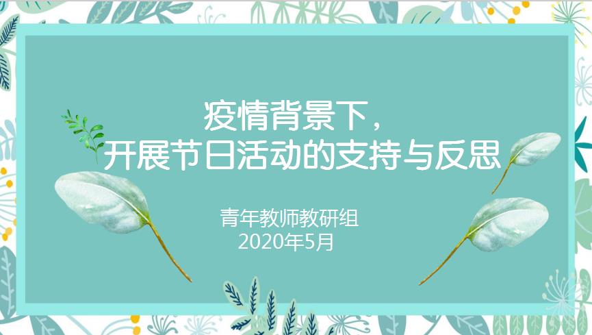 2020年5月22日下午,仙实幼青年教师教研组开展了以“疫情背景下如何支持节日活动的开展与反思”为主题的教研活动。教研活动由组长卢学娴老师主持,教研组全体教师参加了活动。