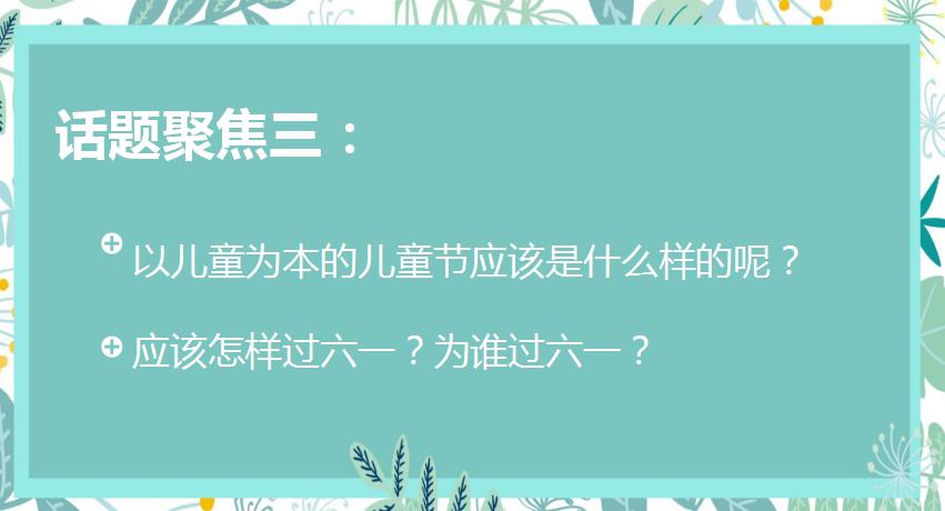 在分享中,大家互相学习,并由此激发了新的创意和思考。教研活动对即将到来的“六一”儿童节提出了讨论的内容:在这个特殊的“六一”节,怎样让孩子感受到节日的快乐,并引导大家回忆自己记忆中最深刻的“六一”印象。活动中,由于老师们前期对问题进行了学习与思考,纷纷畅所欲言,各个精神饱满,热情高涨,群策群论,碰撞出很多精彩的思路,如:开展云表演,录制幼儿心愿,COSPLAY我心目中的英雄等想法,并从讨论中感受到了儿童节应以儿童为本,立足孩子的需求。研讨之后,卢老师要求老师们要始终把自己当成一位有反思精神的教育工作者,把“六一”节等节日活动当成能够促进儿童发展的课程来进行。