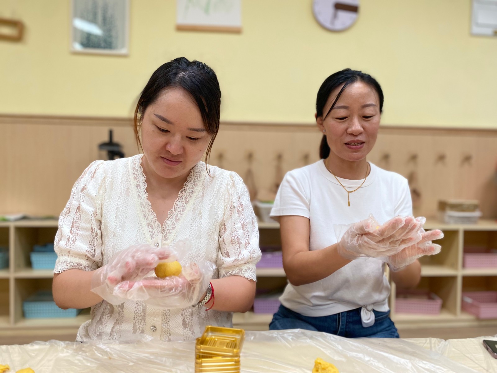 春华秋实,桃李沁香, 为打造健康快乐、团结协作的园所团队,增强团队凝聚力,体验职业幸福感,当教师节遇上中秋节,怎能不一起亲自动手制作月饼呢?大家欢聚一堂,制作出色彩缤纷、花样繁多的月饼,充分体现了老师们的想象力、创造力和动手能力。