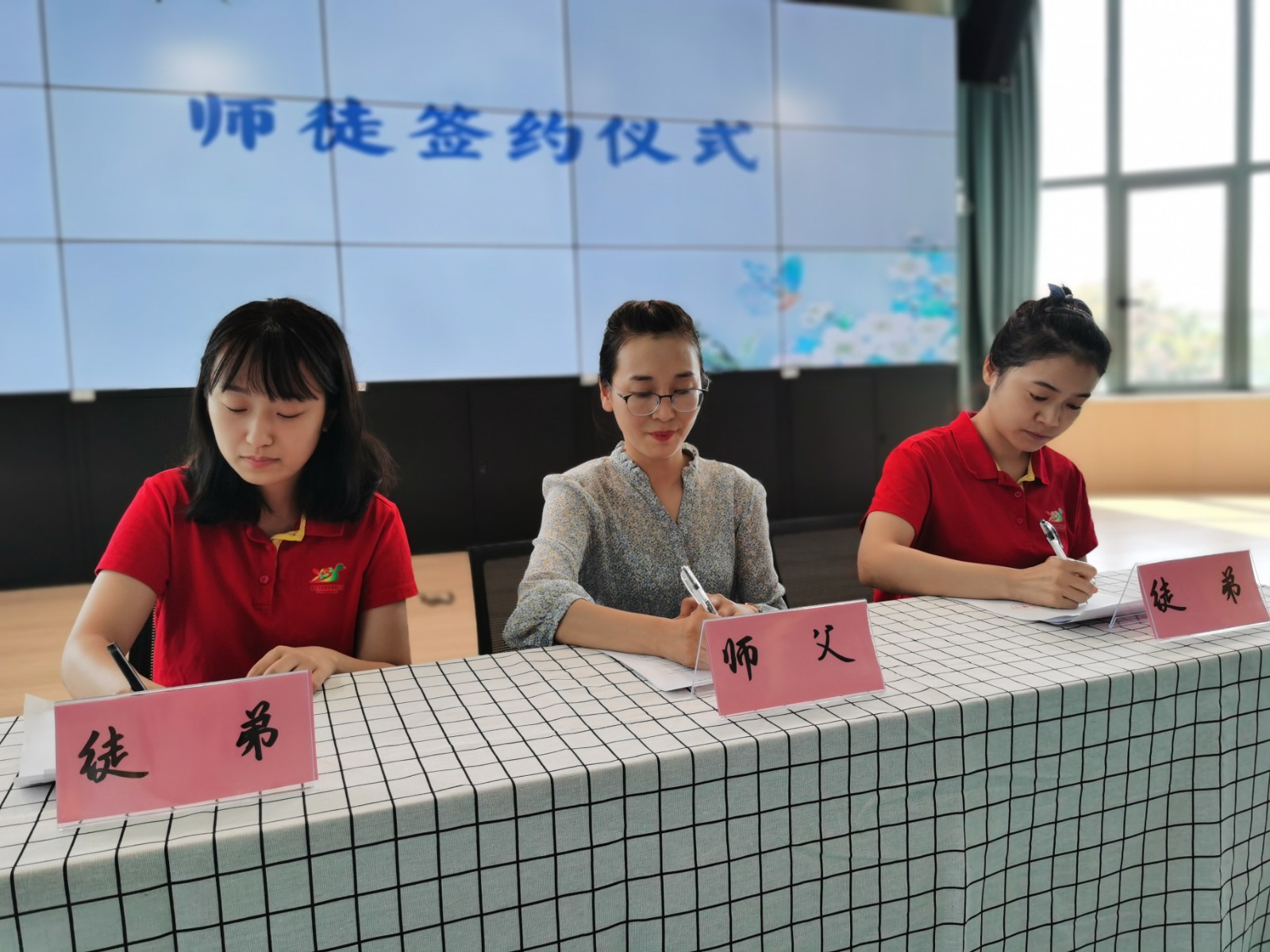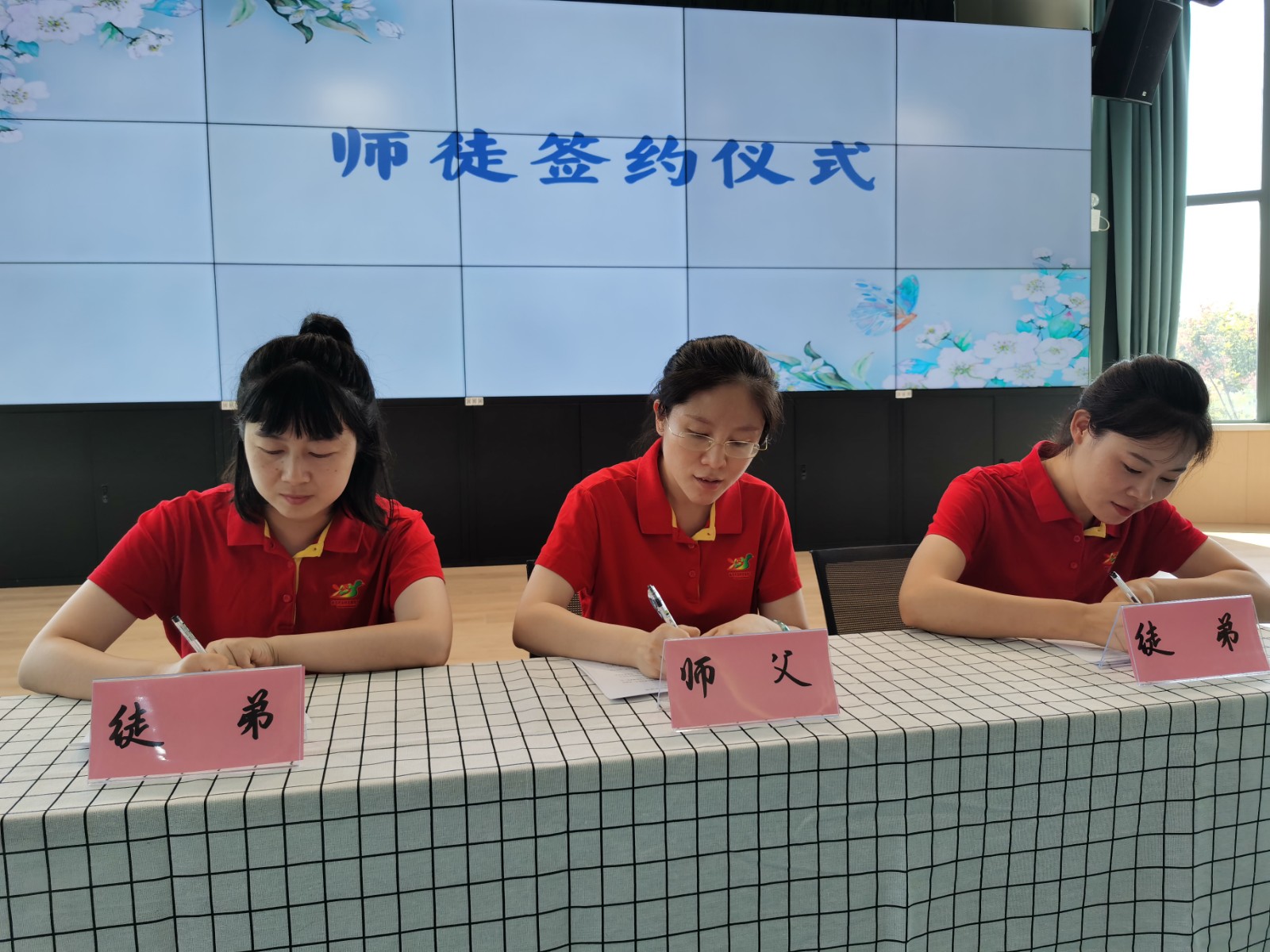 提灯引路,育梦成光。为进⼀步提⾼青年教师的教育教学水平,充分发挥优秀教师的示范作用,全体教师于多功能厅进行了师徒结对仪式。