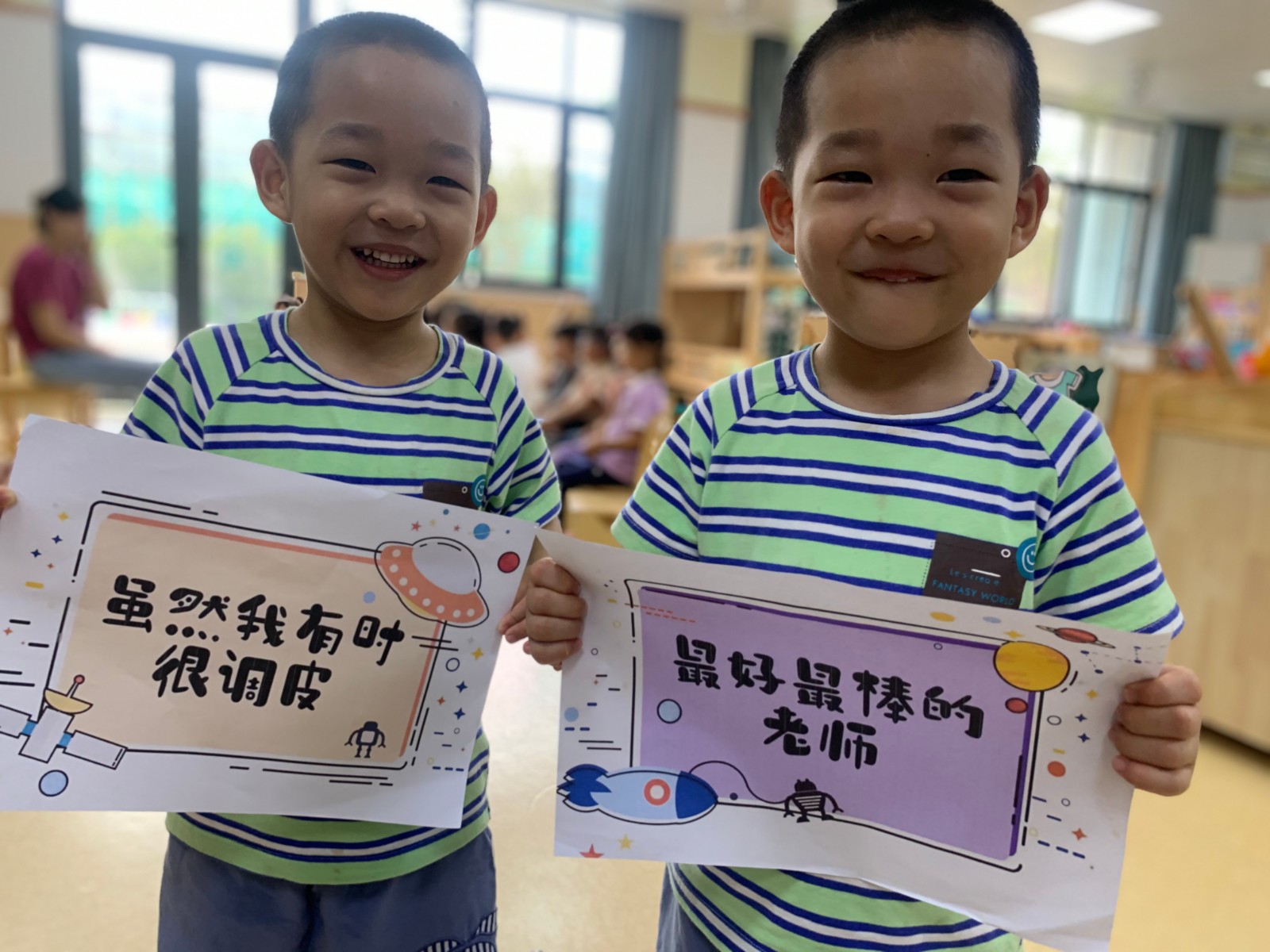 稚嫩的笔绘,真挚的问候,大班的孩子们自制了一张张贺卡,用暖心的祝福,感谢亲爱的老师们付与美好,授以希望。