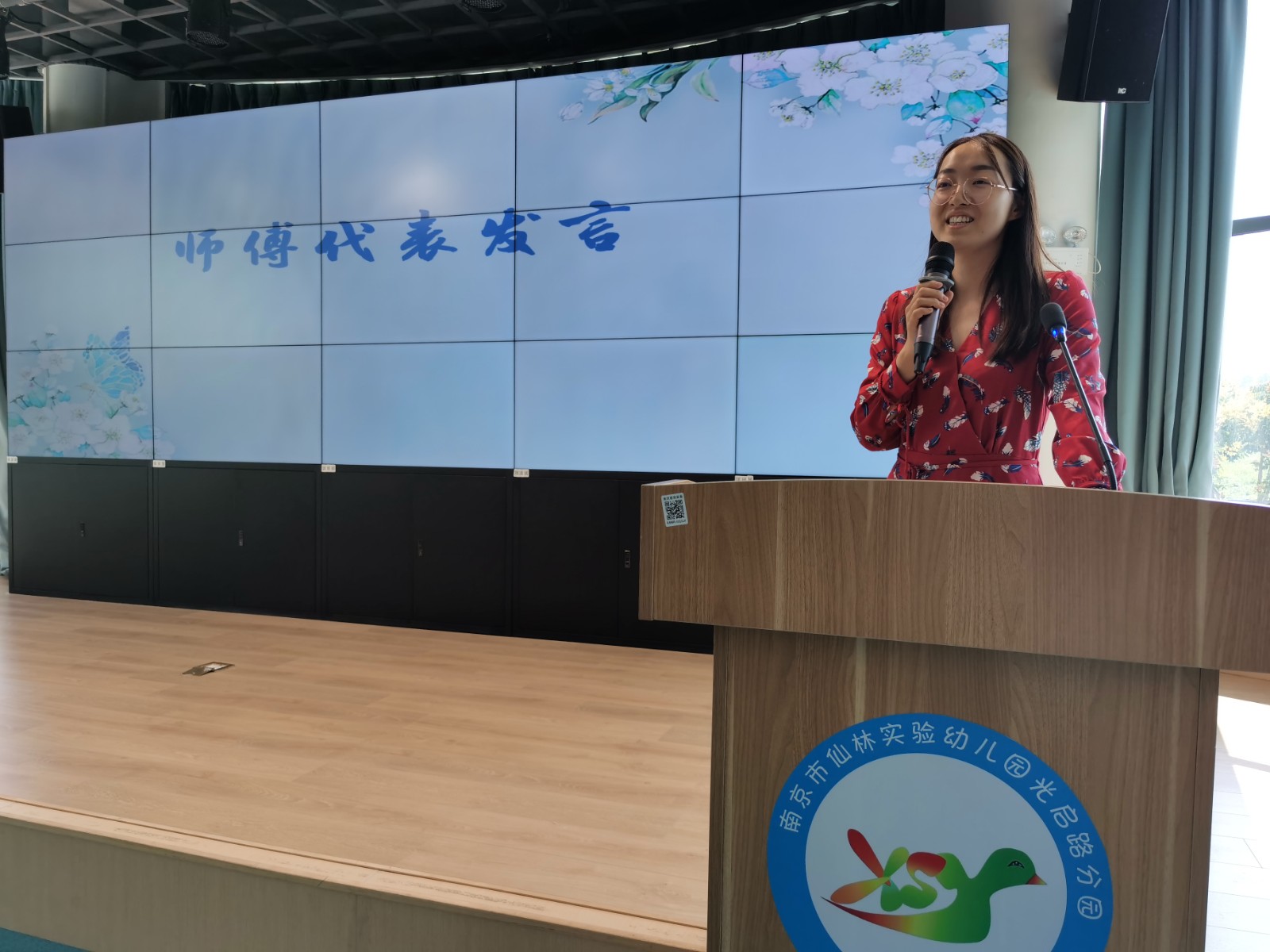 徒弟代表任颖老师的发言,表达了对幼儿园以及师父的感激。同时,也表明了新教师对尽快成长的渴望和提升自我能力的决心。年华长守育人志,岁月永铸师者魂。王愫园长作为师父代表结合自己的成长经历,鼓励青年教师要做一个反思型教师,她还表示要和徒弟相互提高、共同学习。