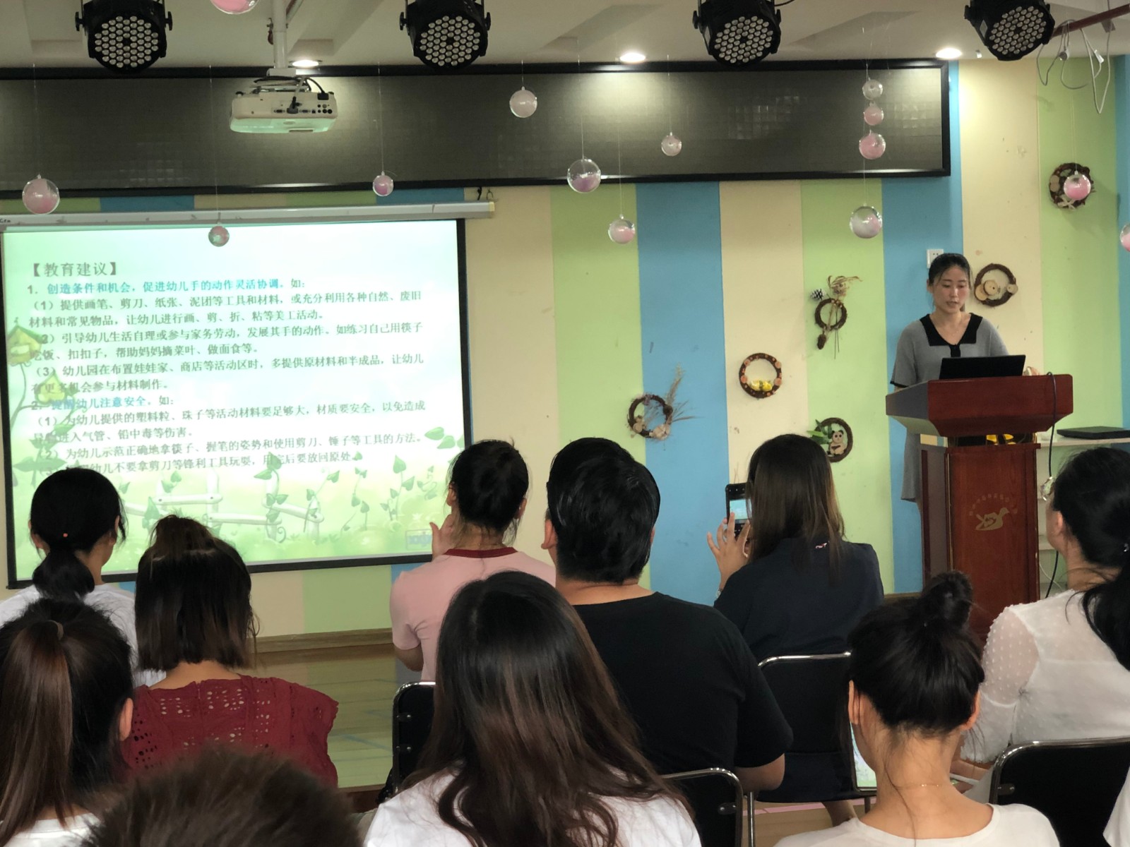 蒋老师强调在一日活动中一定要关注幼儿学习与发展的整体性、尊重幼儿发展的个体差异、理解幼儿学习的方式和特点、重视幼儿的学习品质。教师始终要以幼儿为主,真正成为孩子的倾听者、交流者、合作者、支持者、促进者,让每一位孩子都能自主、自由、富有个性地发展。