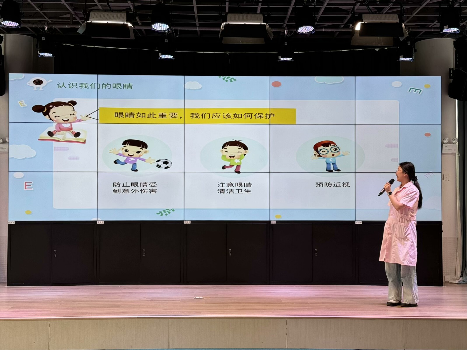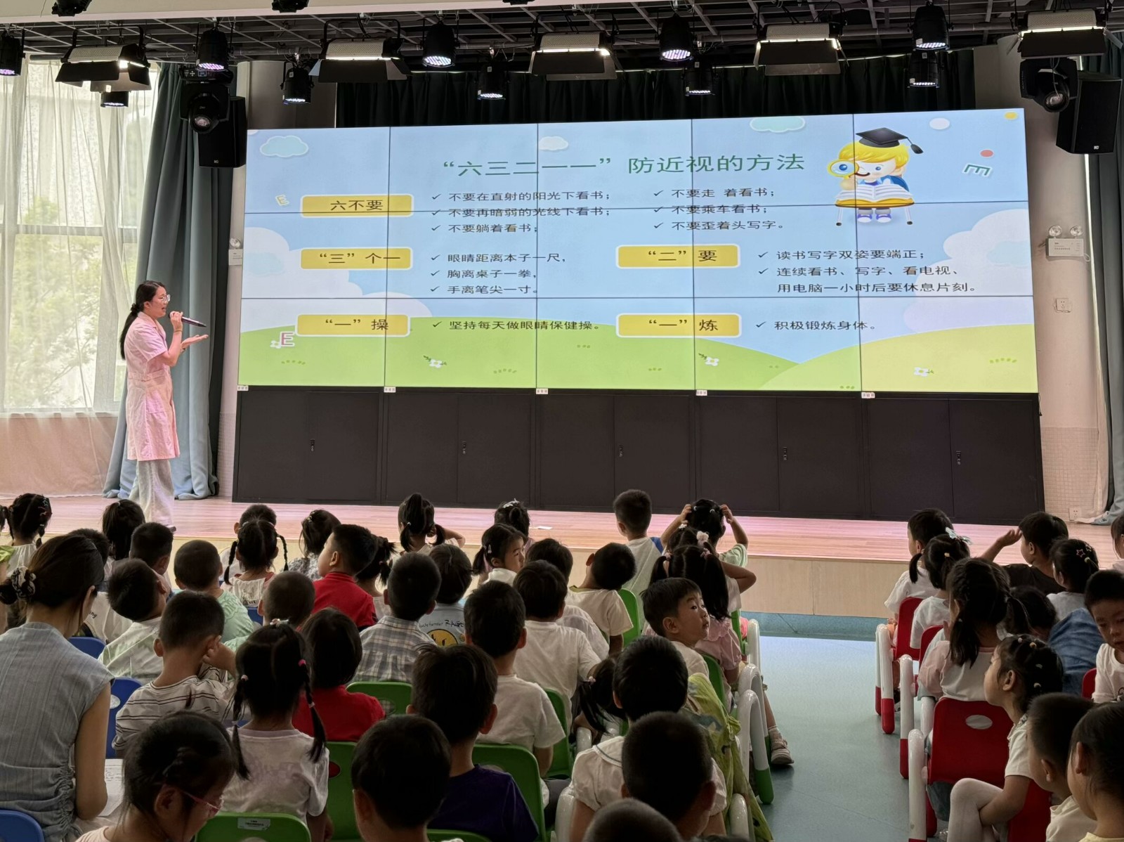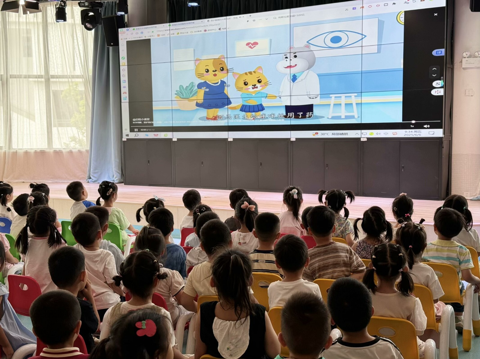 活动当天,幼儿园保健老师为小班孩子们带来了一场生动有趣的讲座。通过播放动画视频、展示眼睛模型等方式,用简单易懂的语言向孩子们讲解了眼睛的结构和功能,以及如何预防近视等常见眼部问题。