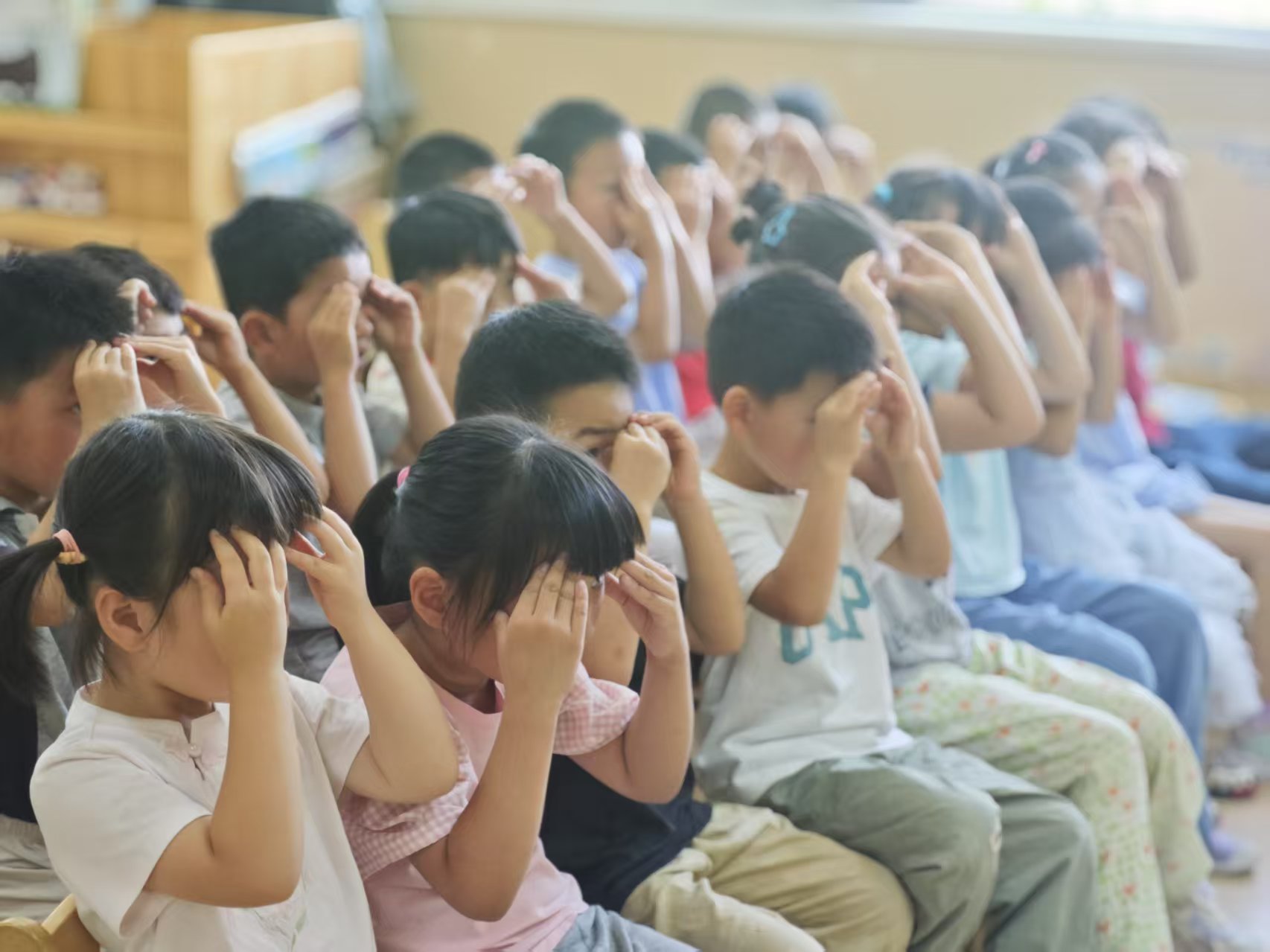 此外,老师们还指导孩子们正确的读写姿势;带领孩子们一起学做眼保健操,舒缓眼部疲劳。