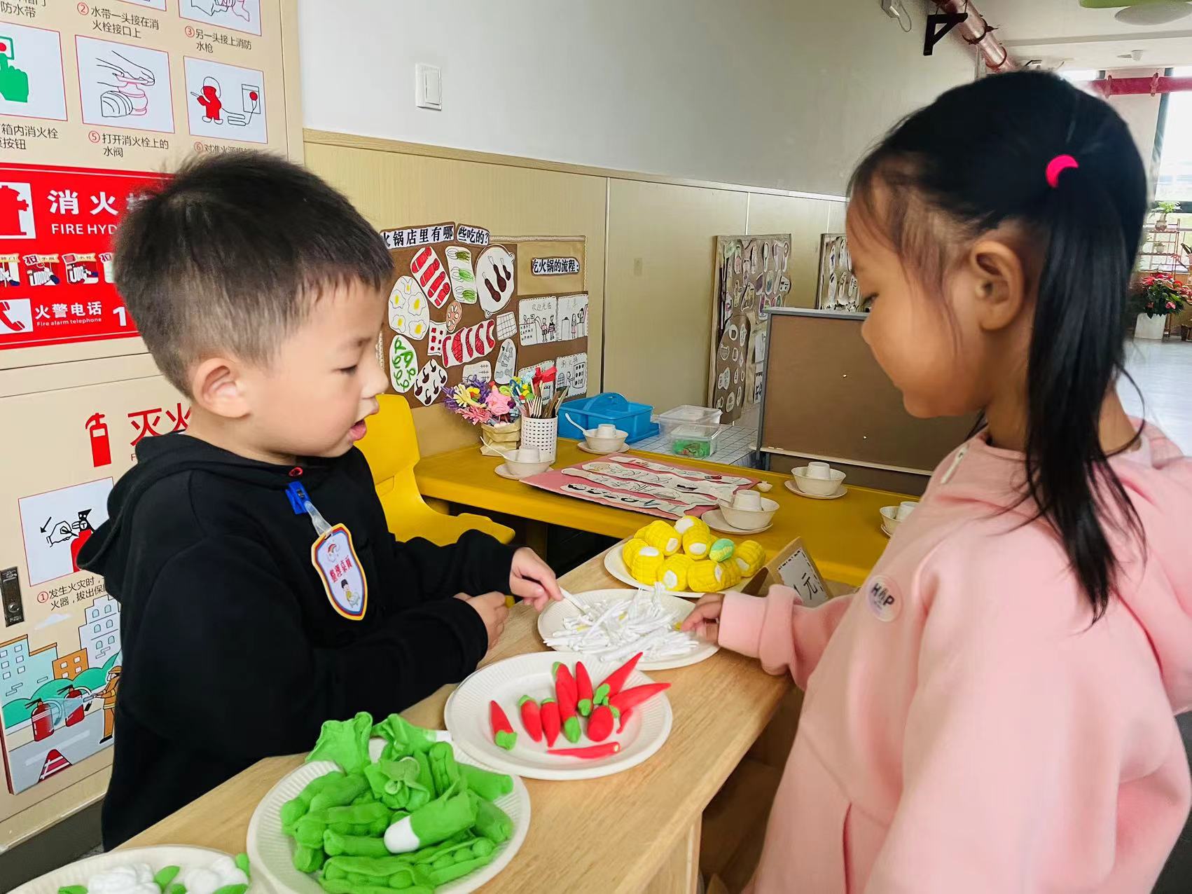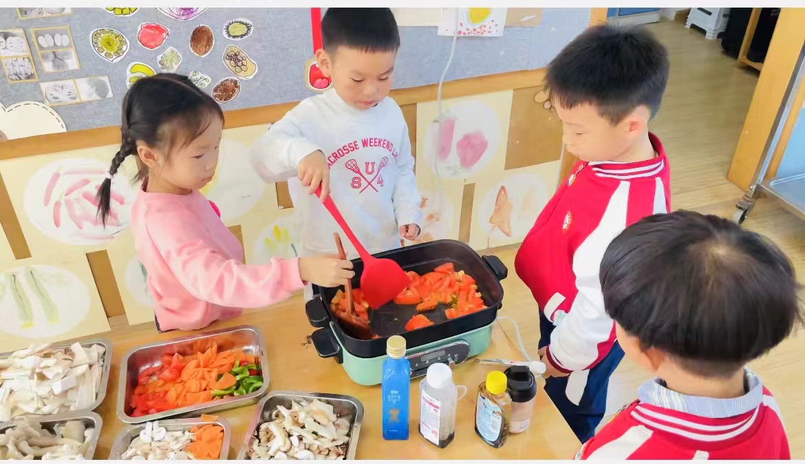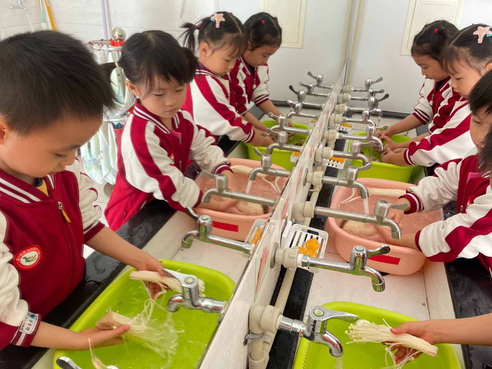 孩子们提着满满的“战利品”回到了教室后,相互交流分享着自己的买菜体验。接下来孩子们对于买回来的蔬菜又有什么计划呢?在老师的协助下,孩子们一起动手洗菜、分盘,用自己买的菜烹制成一道道美味的食物,有趣有味有料,隔着屏幕都仿佛闻到了香喷喷的味道。