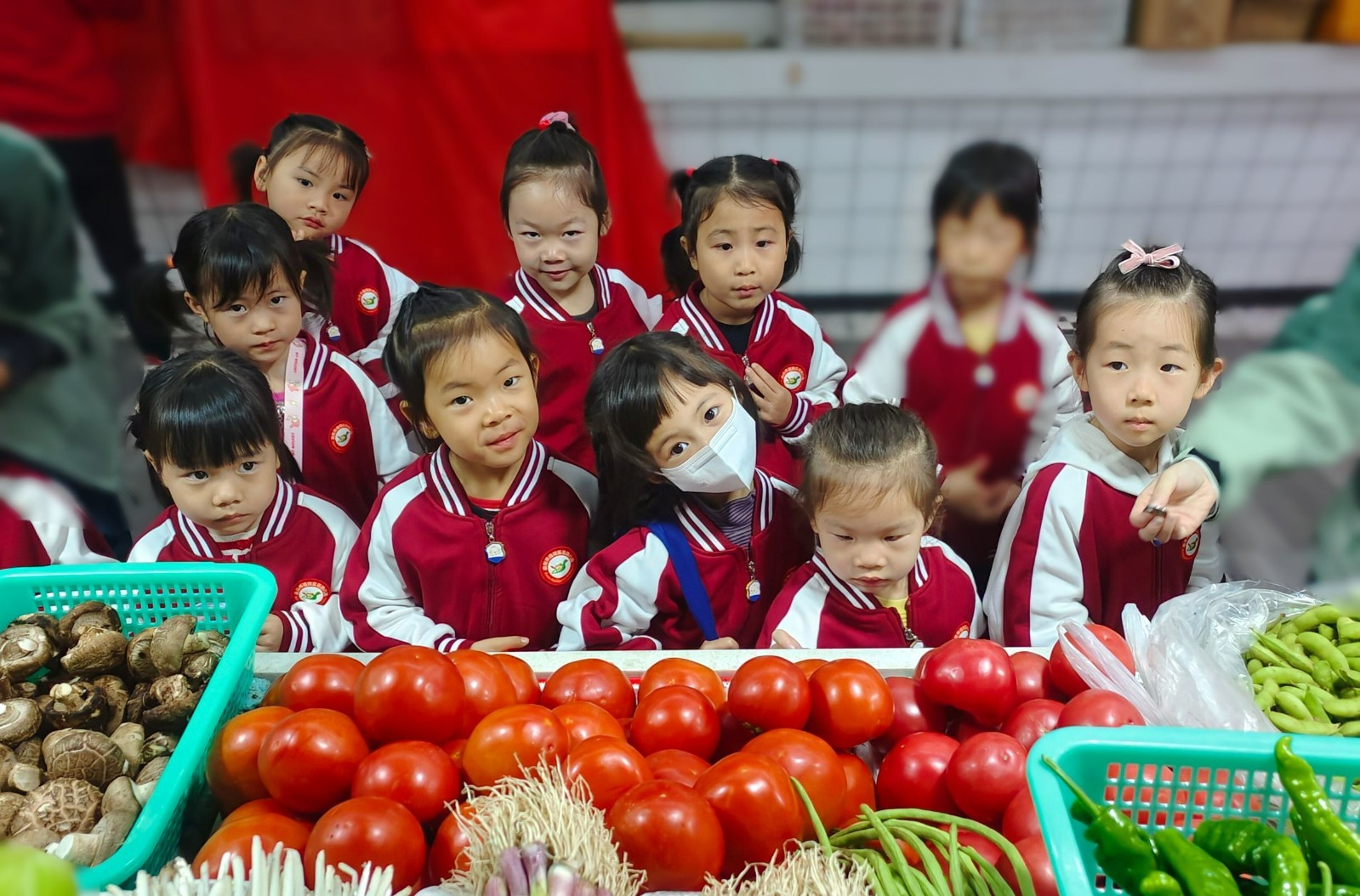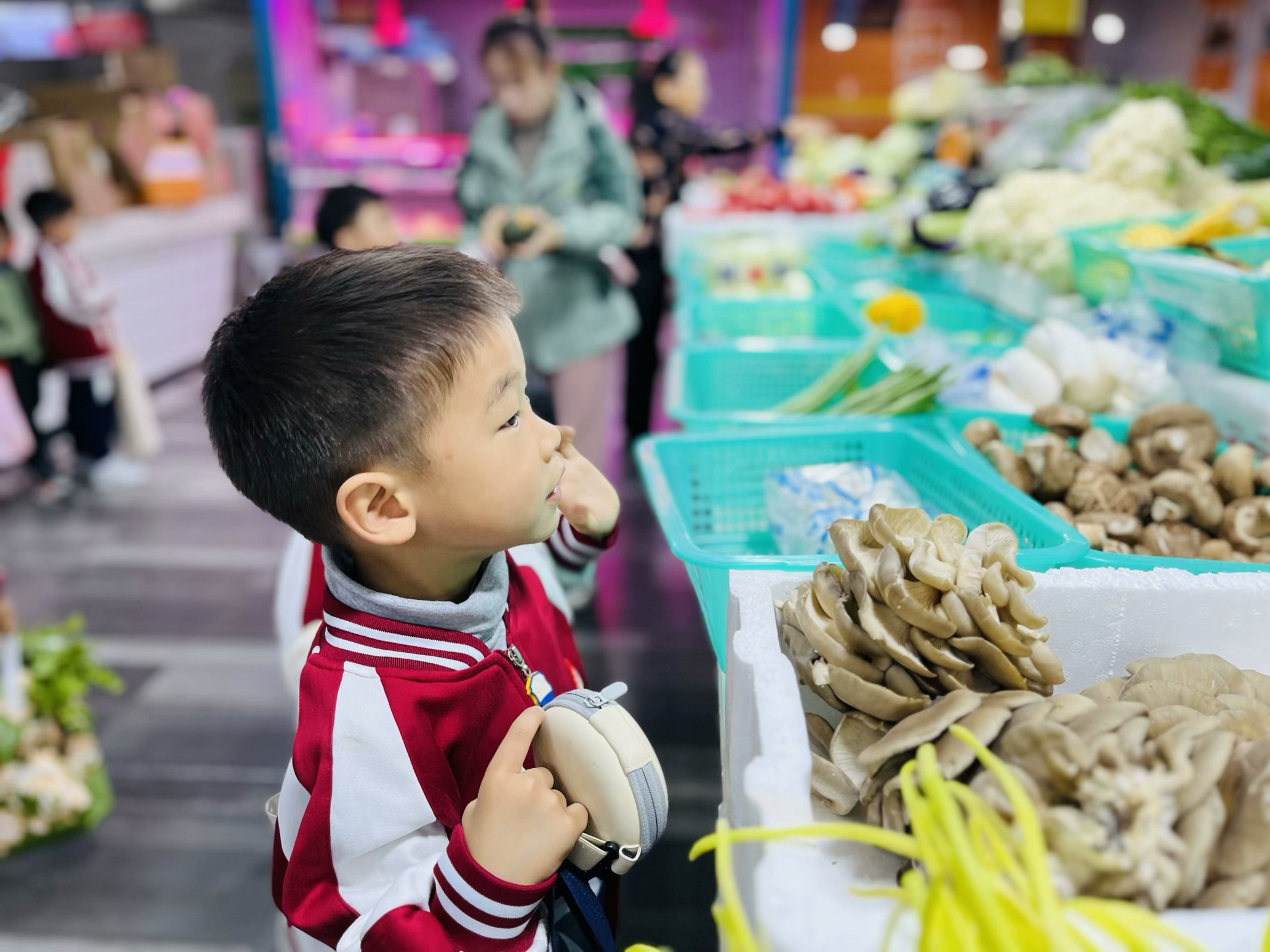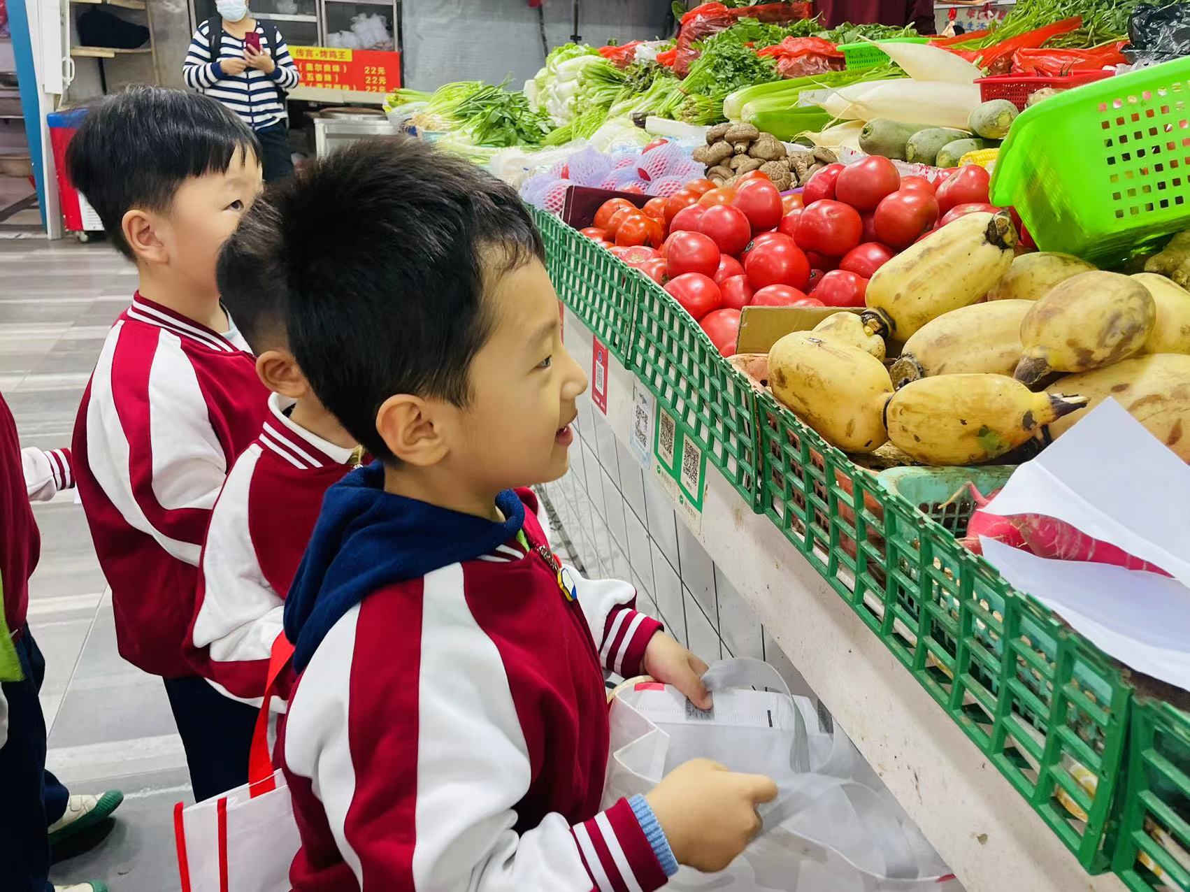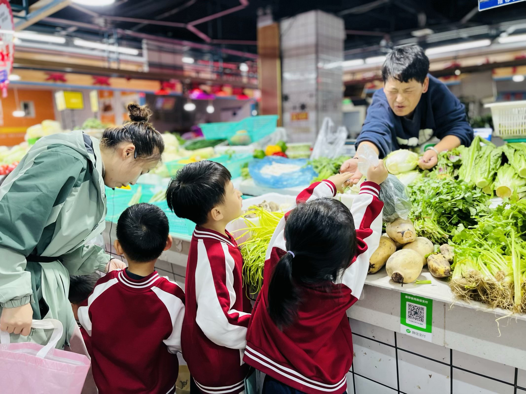 陈鹤琴指出:"大社会、大自然是活教材。"社会资源是幼儿课程重要资源之一。结合中班主题活动《蔬菜大聚会》,2023年11月8日、9日上午,仙实幼中班组幼儿一起走进风华菜场,展开了一场体验式社会实践活动“买菜”,把幼儿的学习场所从幼儿园“搬到”社会情境中,让幼儿走进菜场,体验生活,构建有关蔬菜的丰富经验。