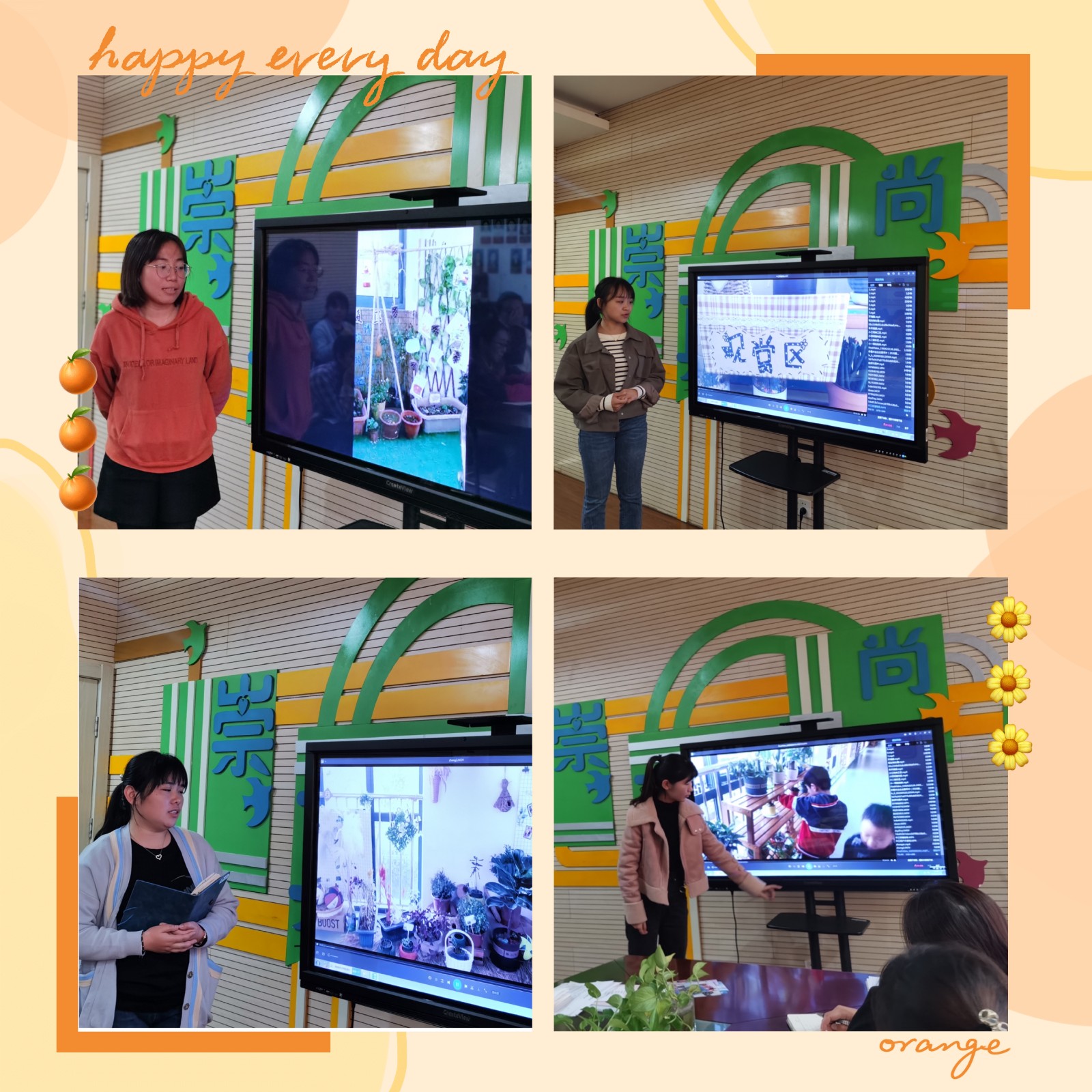 在环境教研组组长陈敏老师的带领下,老师们打开思路,用视频形式展现孩子们参与的足迹,真正地体现环境的教育价值,让环境和孩子对话,让环境留下教育的痕迹,同时也体现了教师的专业理念。