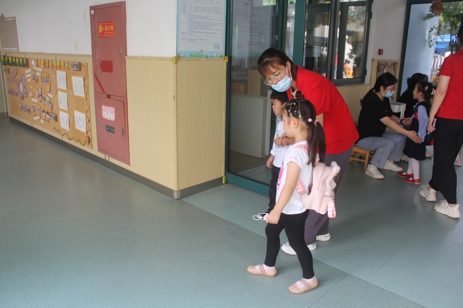 在家长的陪伴下,孩子们准时入园啦!宝贝们严格按照疫情期间入园流程进行。值班老师给每名幼儿进行体温检测。与此同时,保健老师对孩子进行晨检,随时监测孩子们的体温和健康状况,为幼儿安全构筑第一道防火墙。