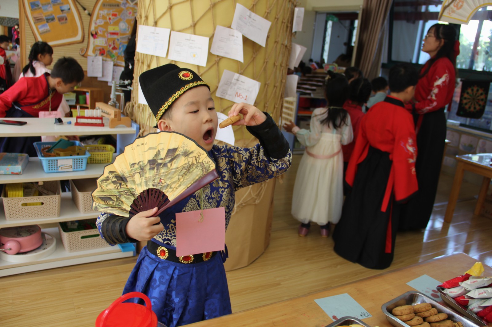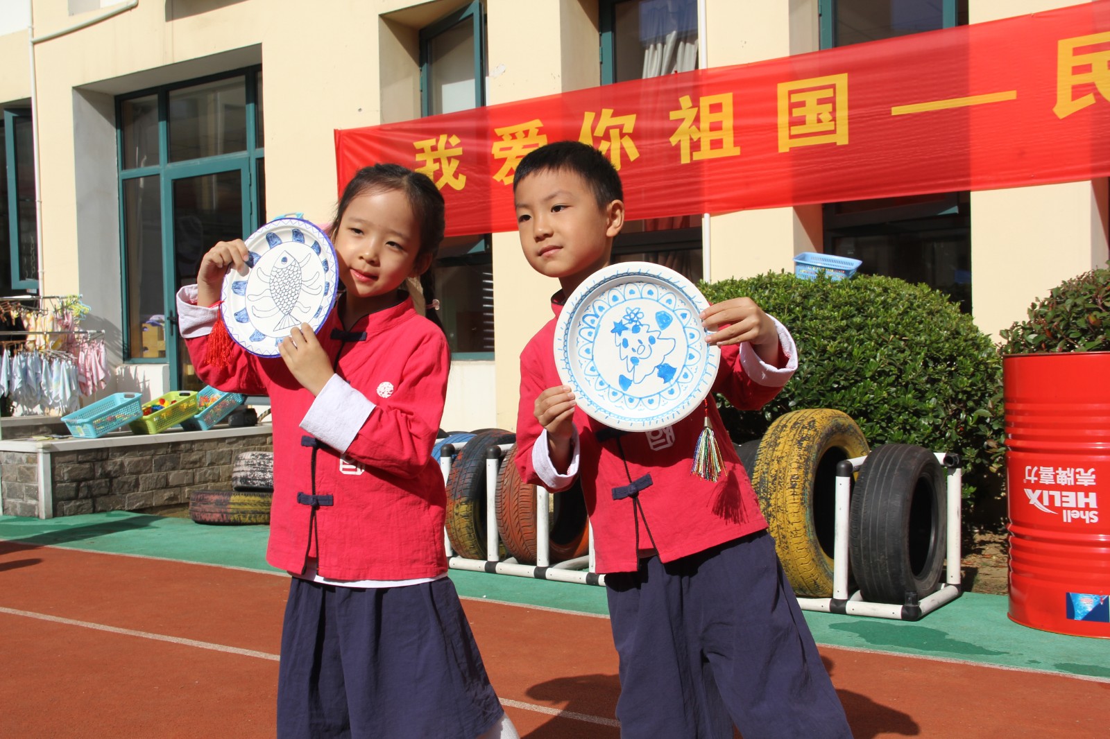 古风悠然的青花瓷手绘盘搭配着大四班小朋友组合走秀,真是精彩纷呈。