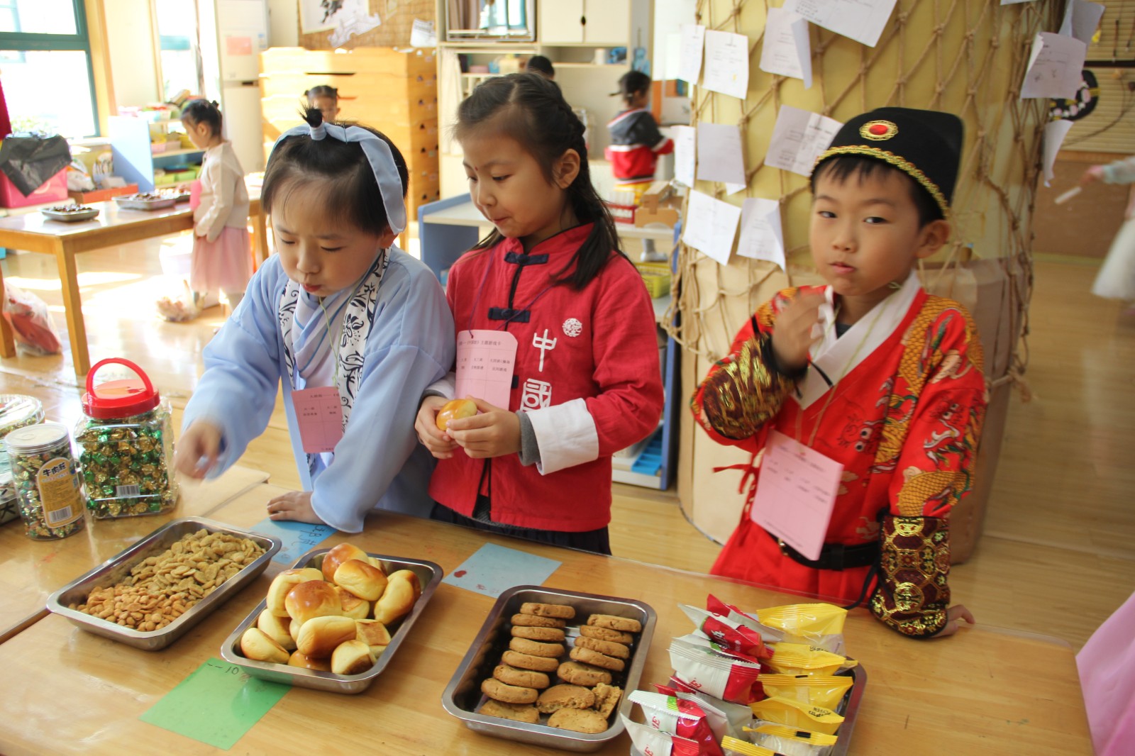 为了使活动更加丰富有趣,还为小朋友准备了各民族的特色美食和民间游戏。小朋友们拿着游戏卡穿梭于各个班级之中,从食物和游戏中感受民族文化。
