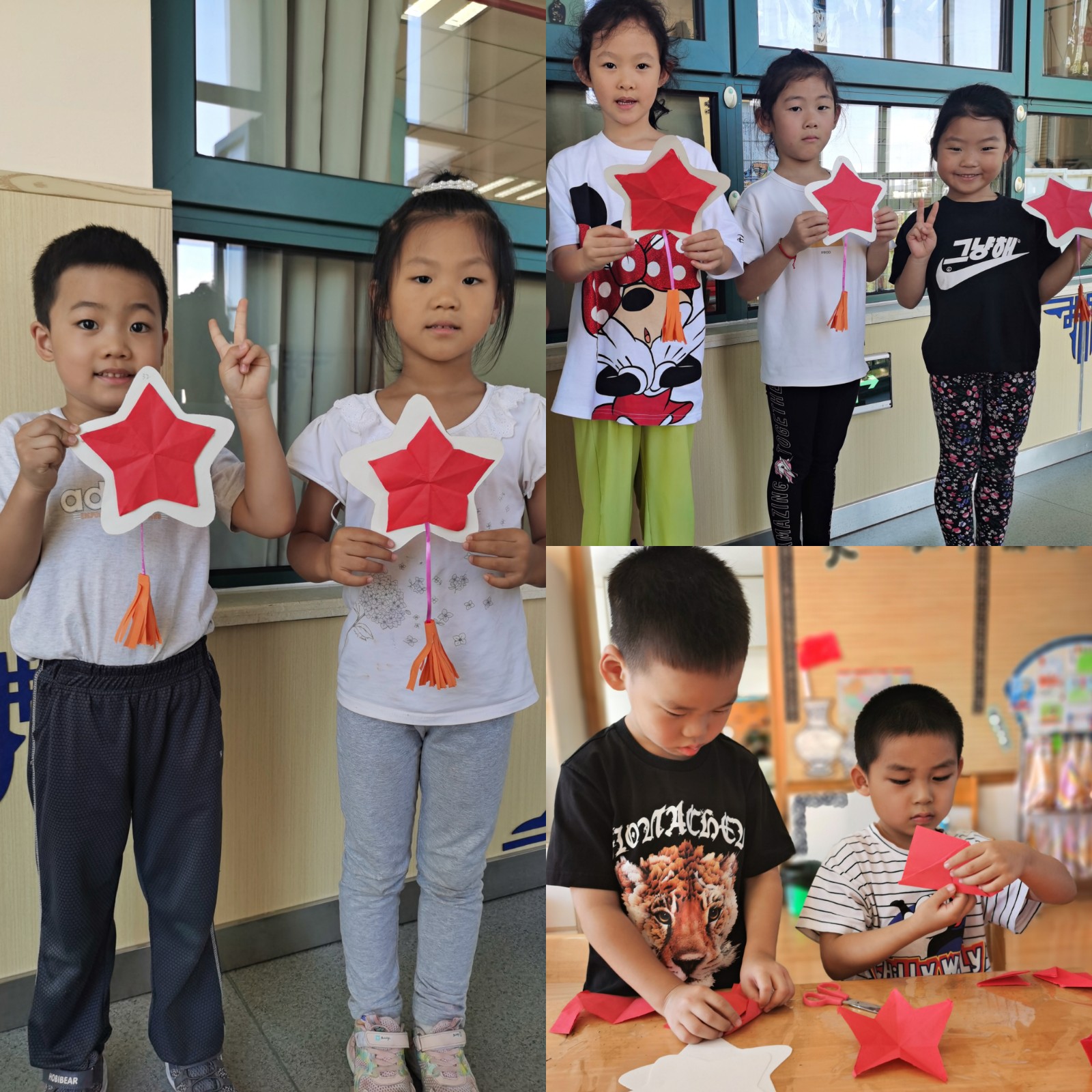 大班的宝贝们通过讲述红色故事、以小组合作的形式制作立体烟花和五角星,增加节日的欢乐氛围。