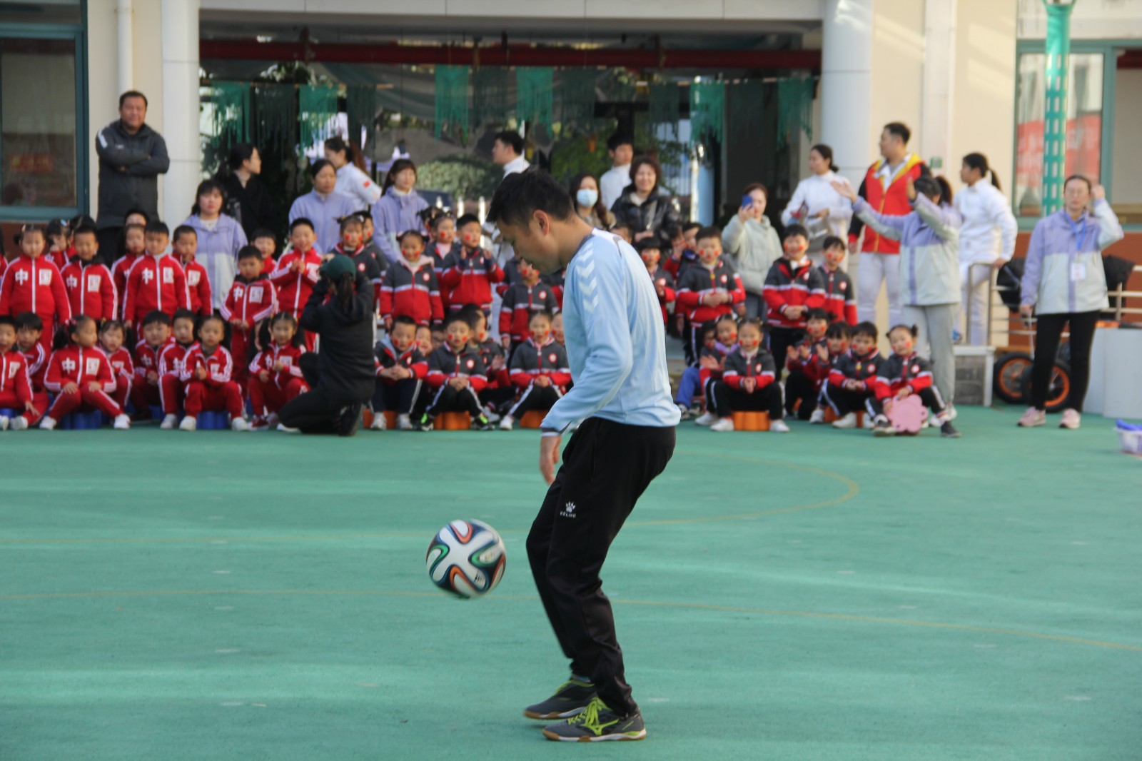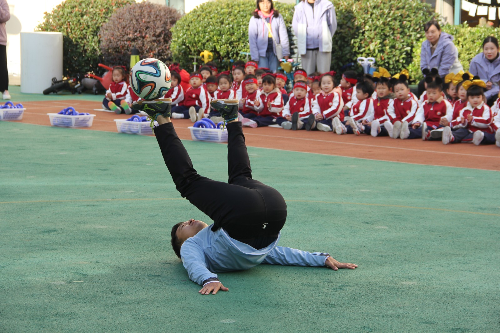 本次早操展示活动,我们还邀请到了亚足联 C级教练员包晗老师,他是花式足球全国个人赛8强,具有“南京市十佳民间体育达人”称号。他为孩子们展示了花样足球,赢得阵阵喝彩和掌声。