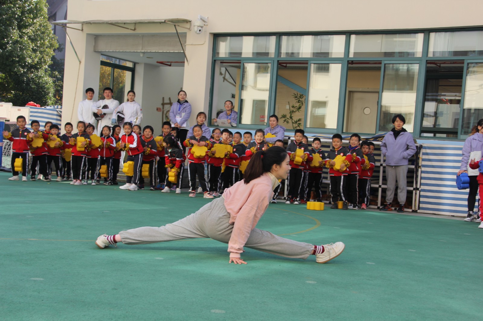 南京中医药大学健美操校队队长也为孩子们带来了精彩的展示。欢快的音乐,旋转的脚尖,精彩的空中弹跳等专业动作,引得孩子们阵阵欢呼!