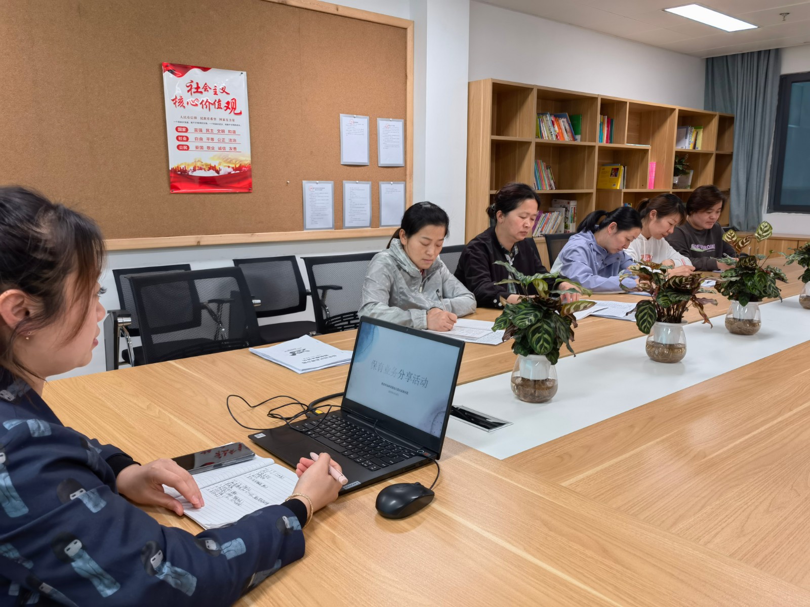 分享结束后,后勤主任何雪与保育老师们共同展开了现场研讨,针对保育笔记如何写、写什么、保育笔记中的称呼和用词等进行了提炼,让保育老师在今后的撰写中更加明确了方法。同时也为我们的保教结合工作奠定了理论基础。
