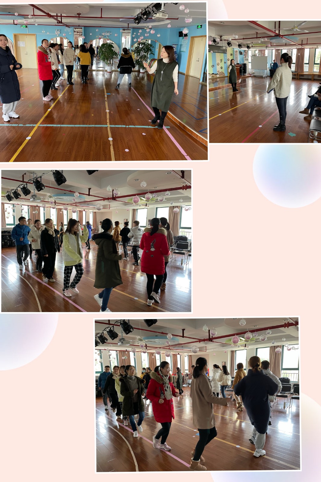 首先,季教授播放了几首音乐,让老师们从音乐中感受达尔克罗兹体态律动的三大要素——空间、时间、力量。同一首音乐,每一位老师都有不同的理解,并创造出很多不同的动作。