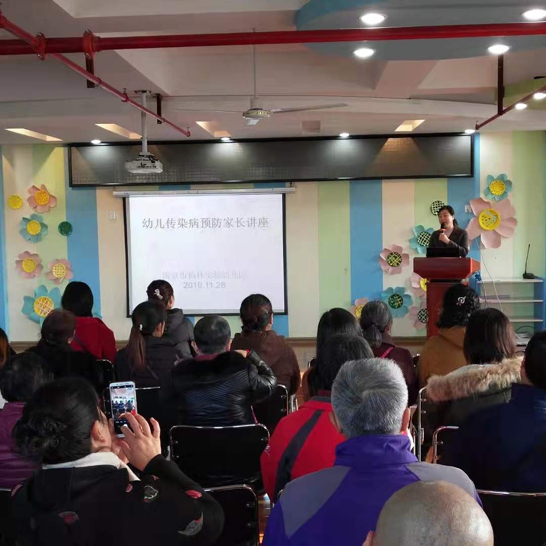 秋冬季天气变化无常,是传染病的多发季节,传染病大多通过空气、飞沫或接触呼吸道分泌物等途径传播,幼儿抵抗力差,很容易感染各种疾病。同时,学校也是人群密集的地方,病菌比较容易传播。为了确保幼儿的身体健康,使家长深入了解传染病的相关知识和预防措施,做到家园共育,11月28日下午,南京市仙林实验幼儿园邀请到了南医大二附院迈皋桥院区儿保科马主任到园进行了《幼儿传染病预防预防》讲座。