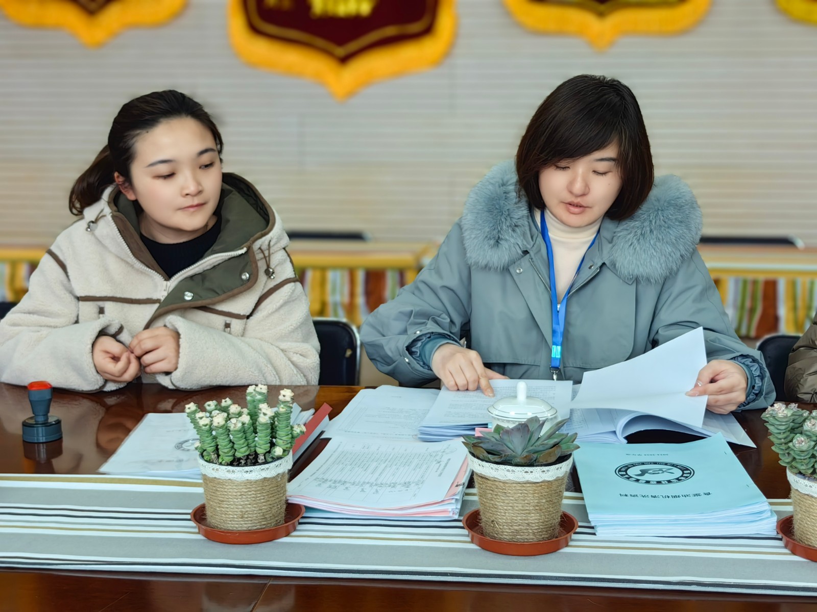 随后,在会议室详细查看了各部门工作方案、安全管理档案、教育教学计划等台账资料,对开学工作情况进行了全面了解。对幼儿园在开学工作中表现出的亮点表示肯定,并提出具体的建议。