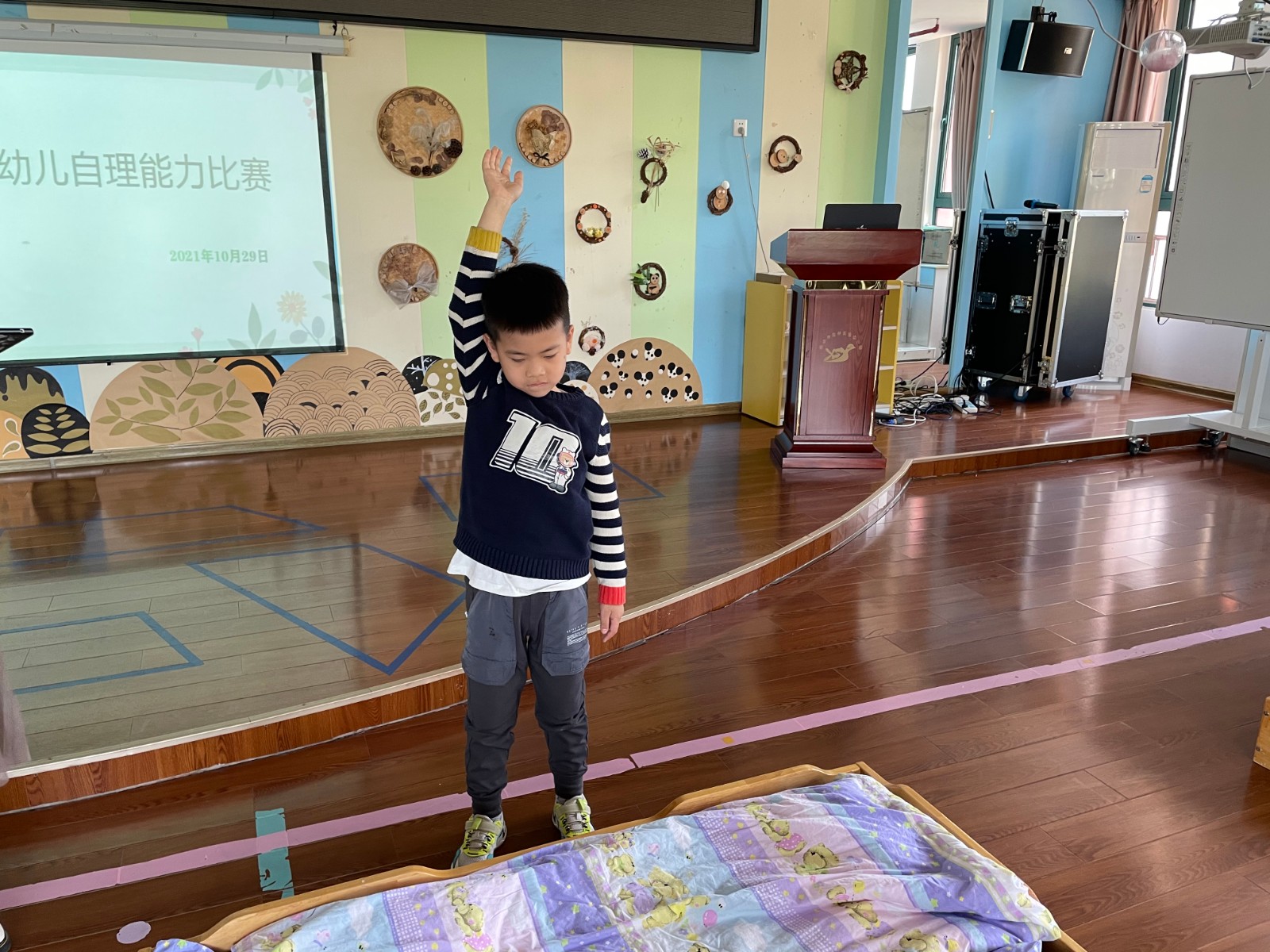 为了巩固幼儿的自我服务意识,提高幼儿的生活自理能力,让他们懂得自己的事情自己做,10月29日上午,南京市仙林实验幼儿园风华路园大班年级组进行了叠被子比赛活动。通过活动增强幼儿的竞争意识及集体荣誉感,为接下来冬天叠好厚被子做好铺垫。