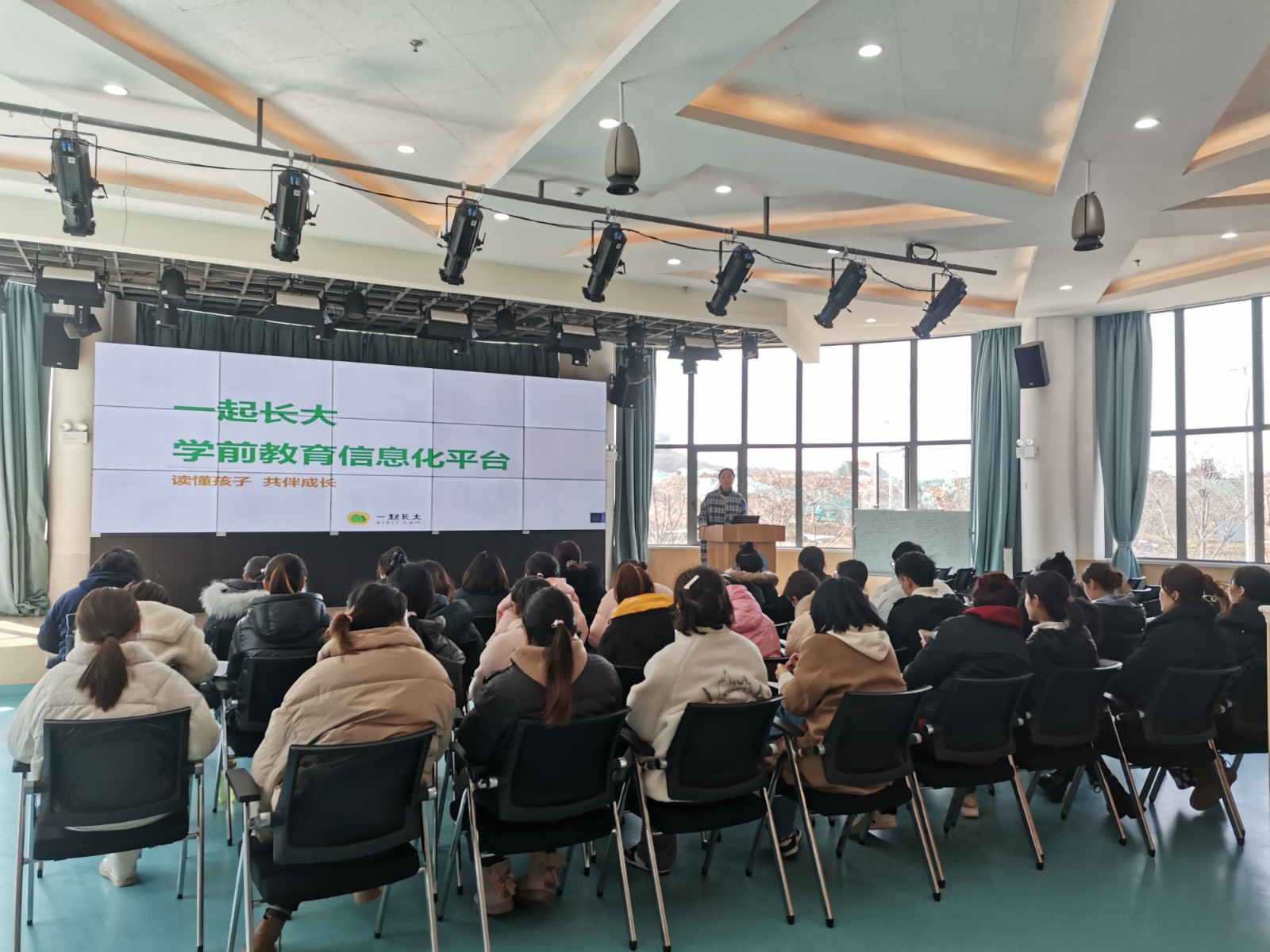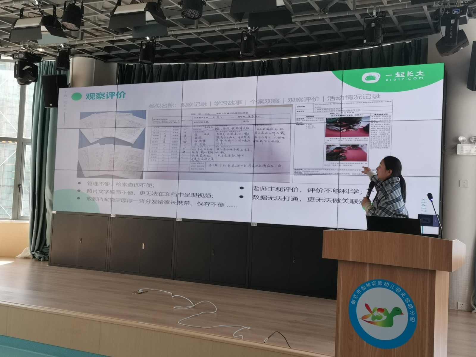 为了进一步提高教师多维度观察、记录幼儿在园发生随机事件的能力,更专业地解析幼儿在园的所学、所思、所想,充分发挥“一起长大APP”使用的时效性,仙林实验幼儿园光启路分园于2月14日中午邀请了弘文教育的杨老师为教师们进行“一起长大”电子观察评价专题培训。