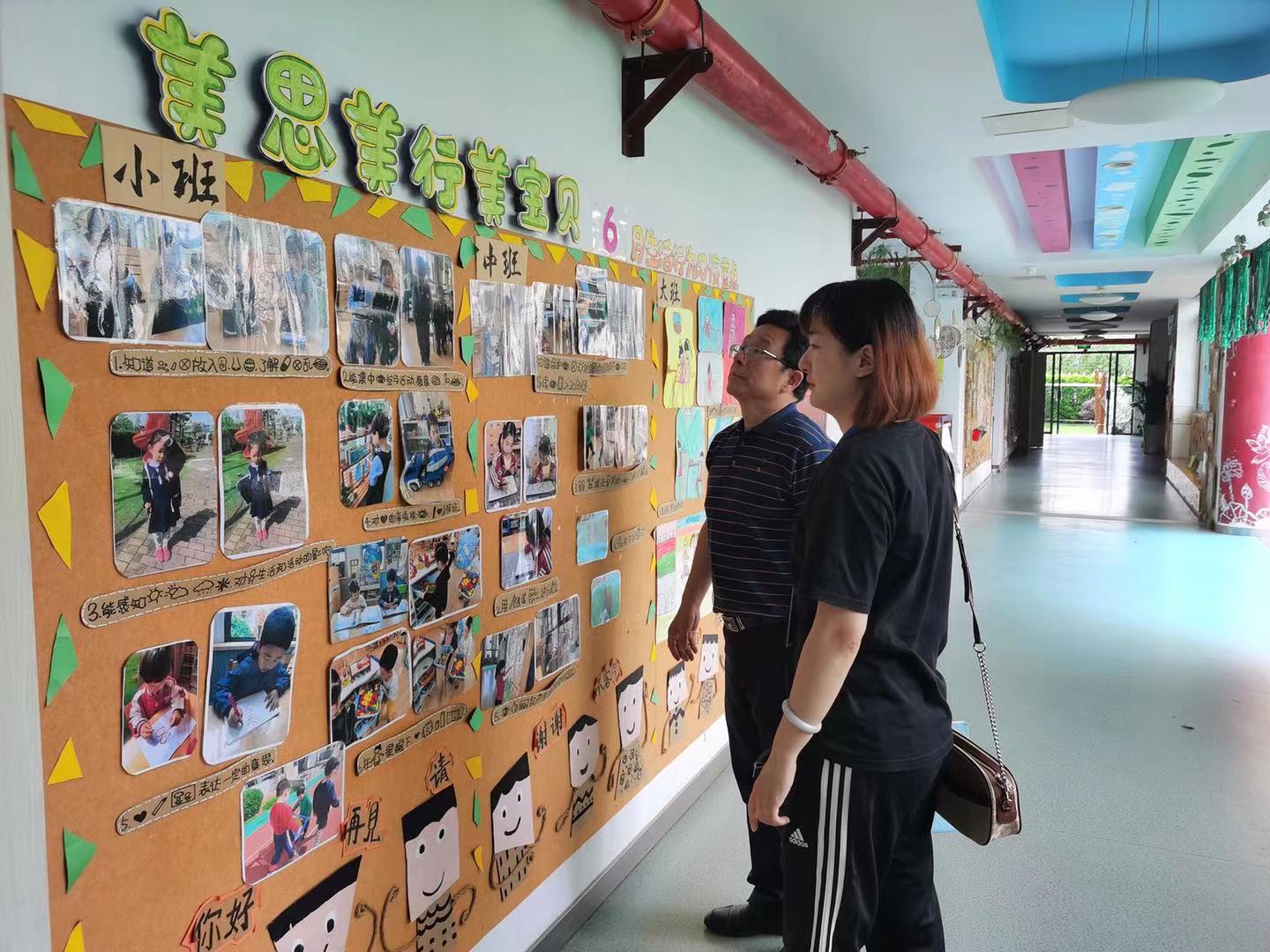 两位督学实地查看了园内环境,对园内关于园所文化、三风建设、师德师风、幼小衔接等环境宣传进行现场勘察。