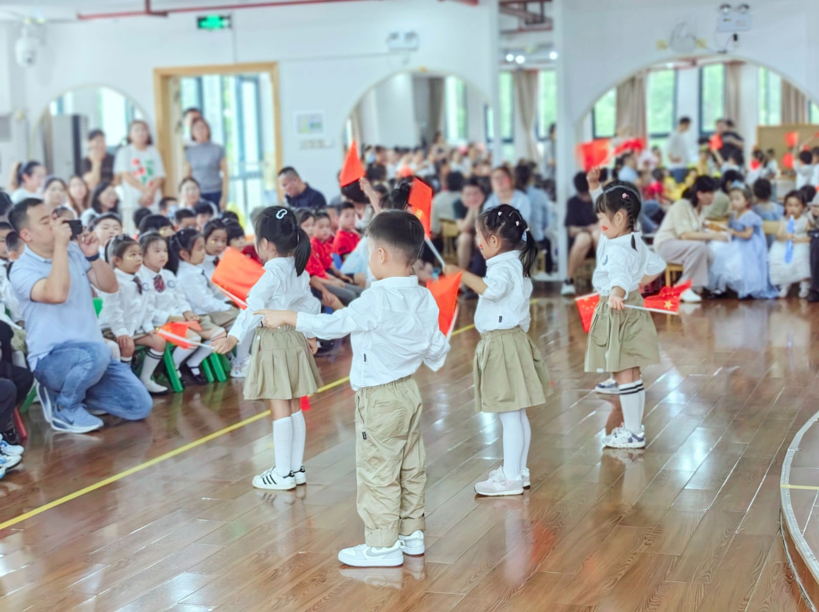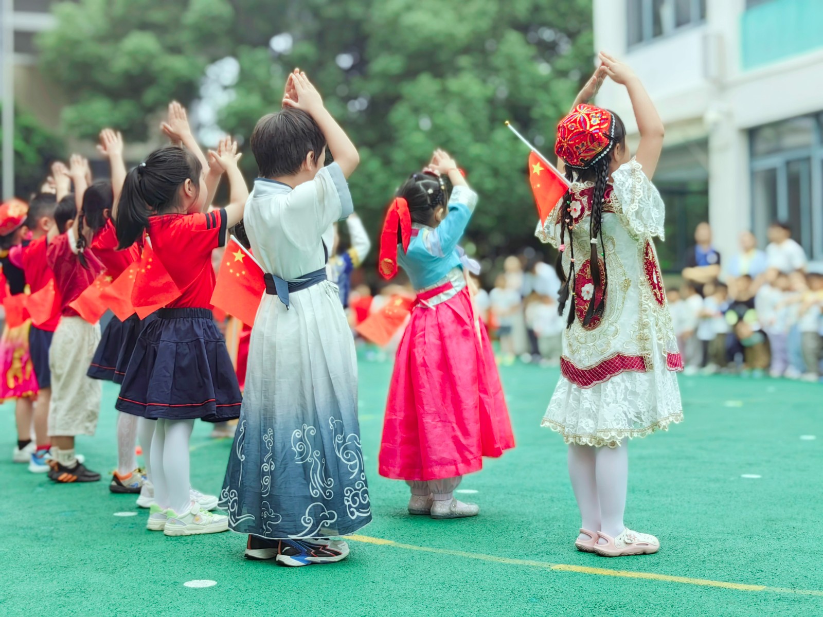 五十六个民族五十六支花,五十六族兄弟姐妹是一家。大班的小朋友们一同歌唱祖国,全体师幼载歌载舞,为祖国的76华诞献上最真挚的祝福。歌声中充满了对祖国的热爱和祝福,也凝聚了我们对未来美好生活的共同期盼。