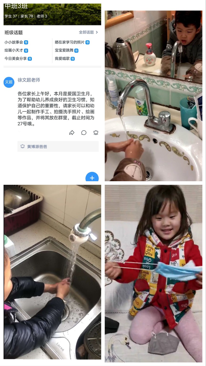 在全国第32个爱国卫生运动月里,各班级教师在群中发起倡议,动员大家一起积极参与其中。