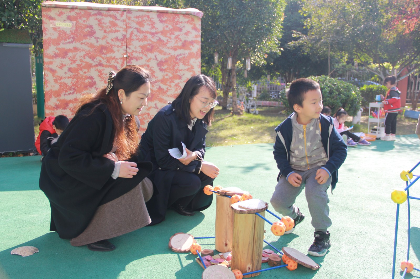 接下来教师们观摩了幼儿自主游戏,大家驻足观察并详细记录,有的参与幼儿游戏,感受孩子们沉浸游戏的乐趣;有的与游戏组织教师交流、互换想法。