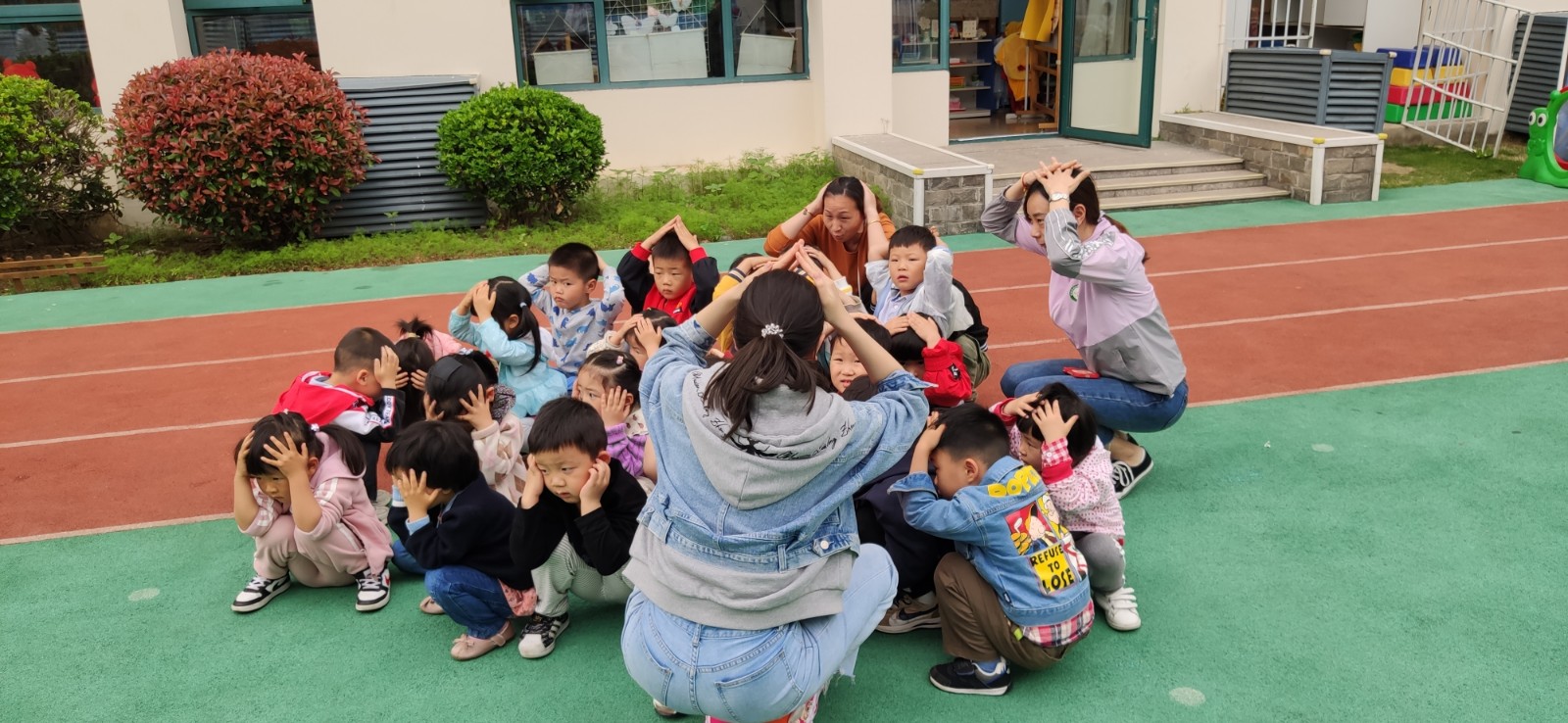 随着第二声警报声响起,各班教师立即组织全体幼儿双手护住头部,弯腰低身,沿着预定安全路线快速、有序地疏散到室外安全空旷操场。疏散用时2分27秒,幼儿368人,教职工55人,全部安全撤离到安全地带。