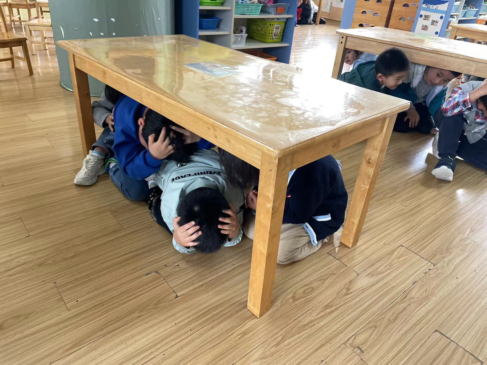 下午3点18分,随着第一声警报响起,各班教师立即告知幼儿“地震来了,不要慌”,随即指挥幼儿紧急避险,孩子们就近躲避,迅速蹲到坚固的桌子旁,用双手护住头部,而一楼的教师则迅速组织幼儿到户外空旷平坦的地方就近避震。
