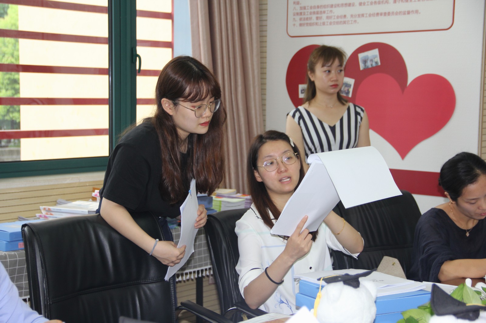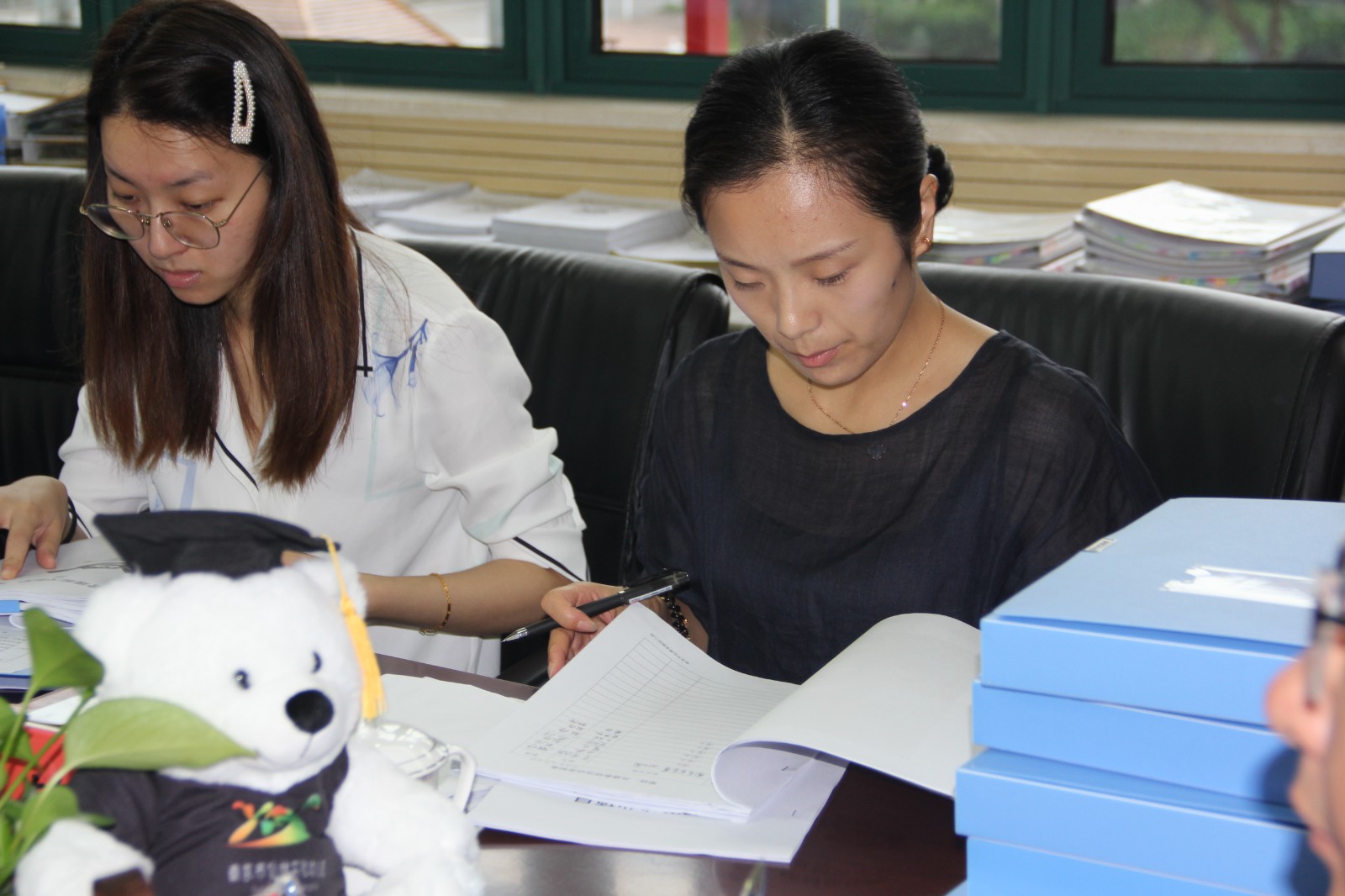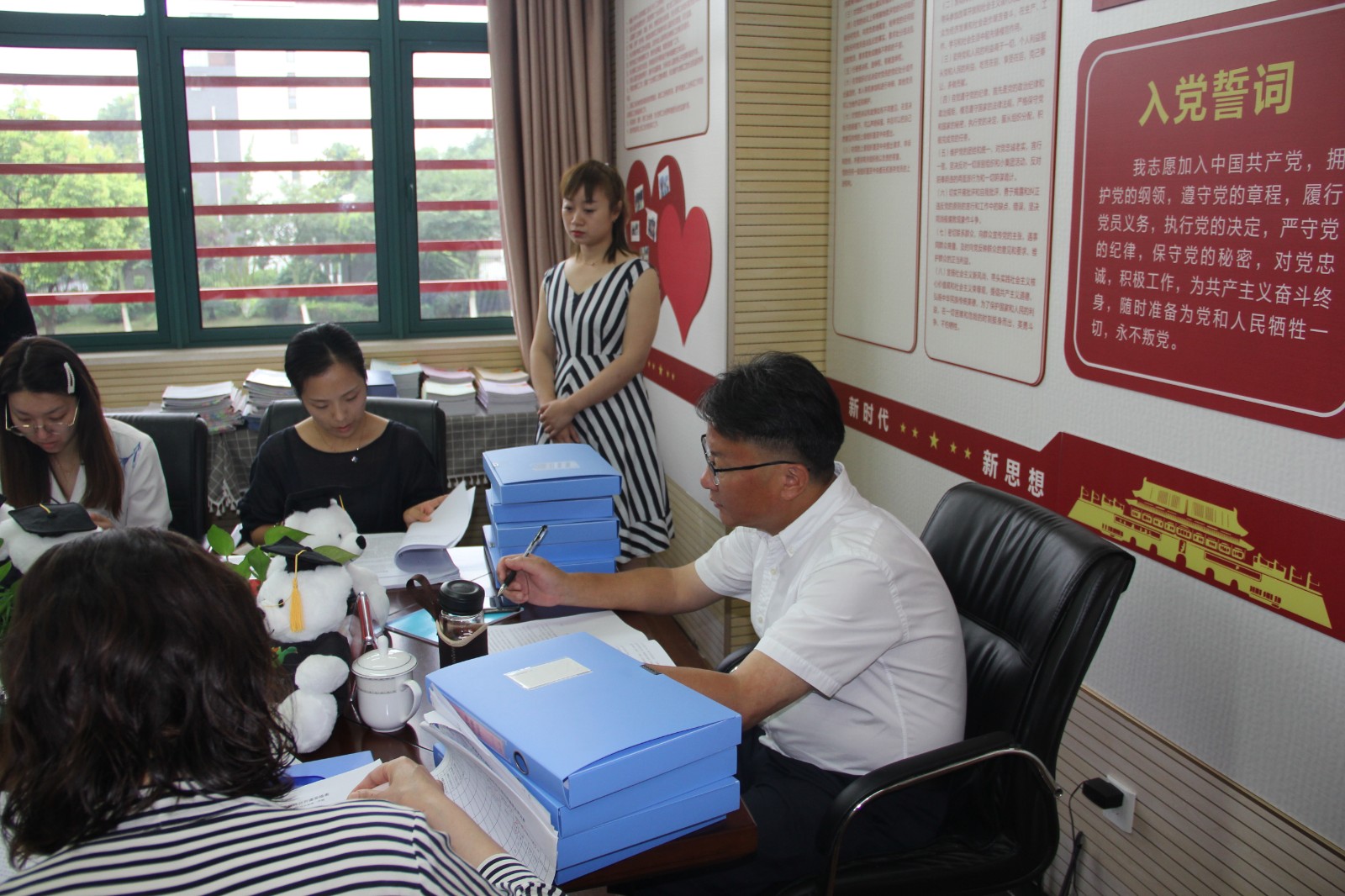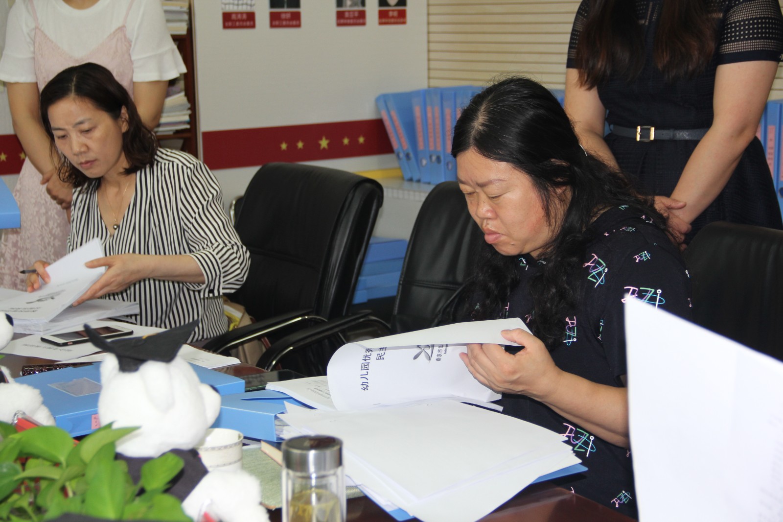 随后考核组成员对照评估标准,分版块查看各项资料,并在查阅过程中及时与相关负责人进行沟通,详细深入的了解幼儿园各项工作的开展情况。