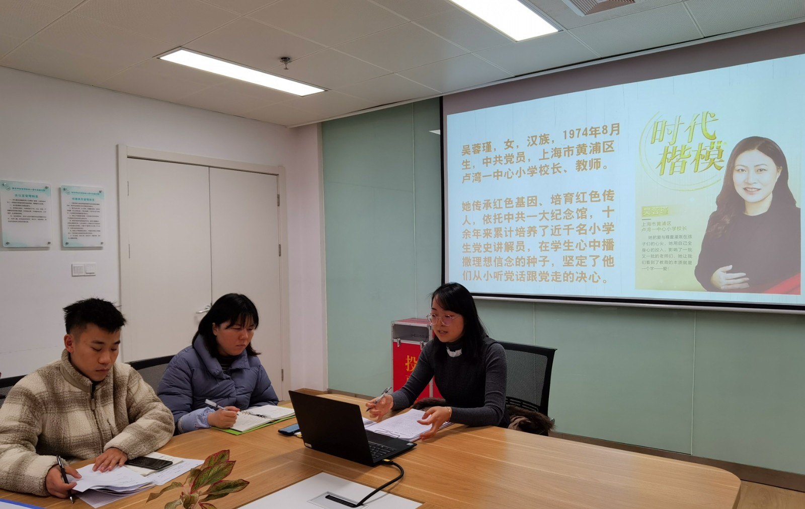 培训中,光启路分园执行园长王愫对“时代楷模”吴蓉瑾老师的事迹进行了介绍。