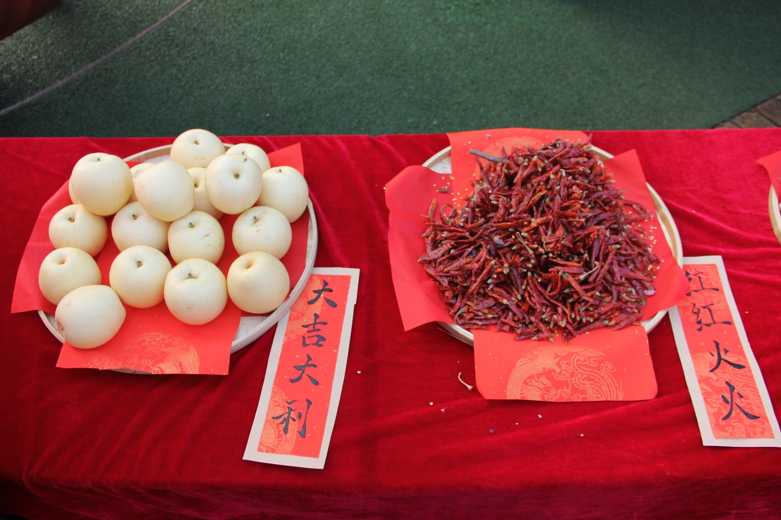 老师们精心准备了大葱、苹果、花生、红辣椒、梨、棒棒糖,每种食物的名称与谐音祝福语相似,分别寓意着聪明伶俐,平平安安,生龙活虎,红红火火,大吉大利,新年棒棒棒!希望这份特殊的礼物伴随孩子们健康成长!