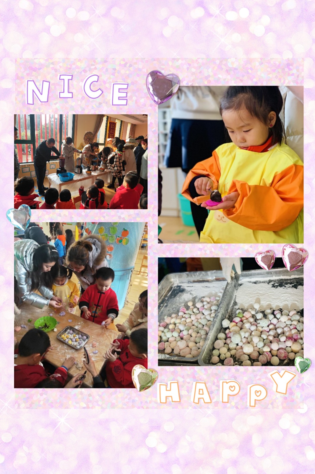 寄托着追求团圆和美满的愿望,孩子们和爸爸妈妈老师一起搓汤圆、吃汤圆。幼儿园还精心给小朋友准备了玉米、南瓜饼、薯条、鹌鹑蛋等,象征着新的一年五谷丰登,团团圆圆,顺遂圆满。