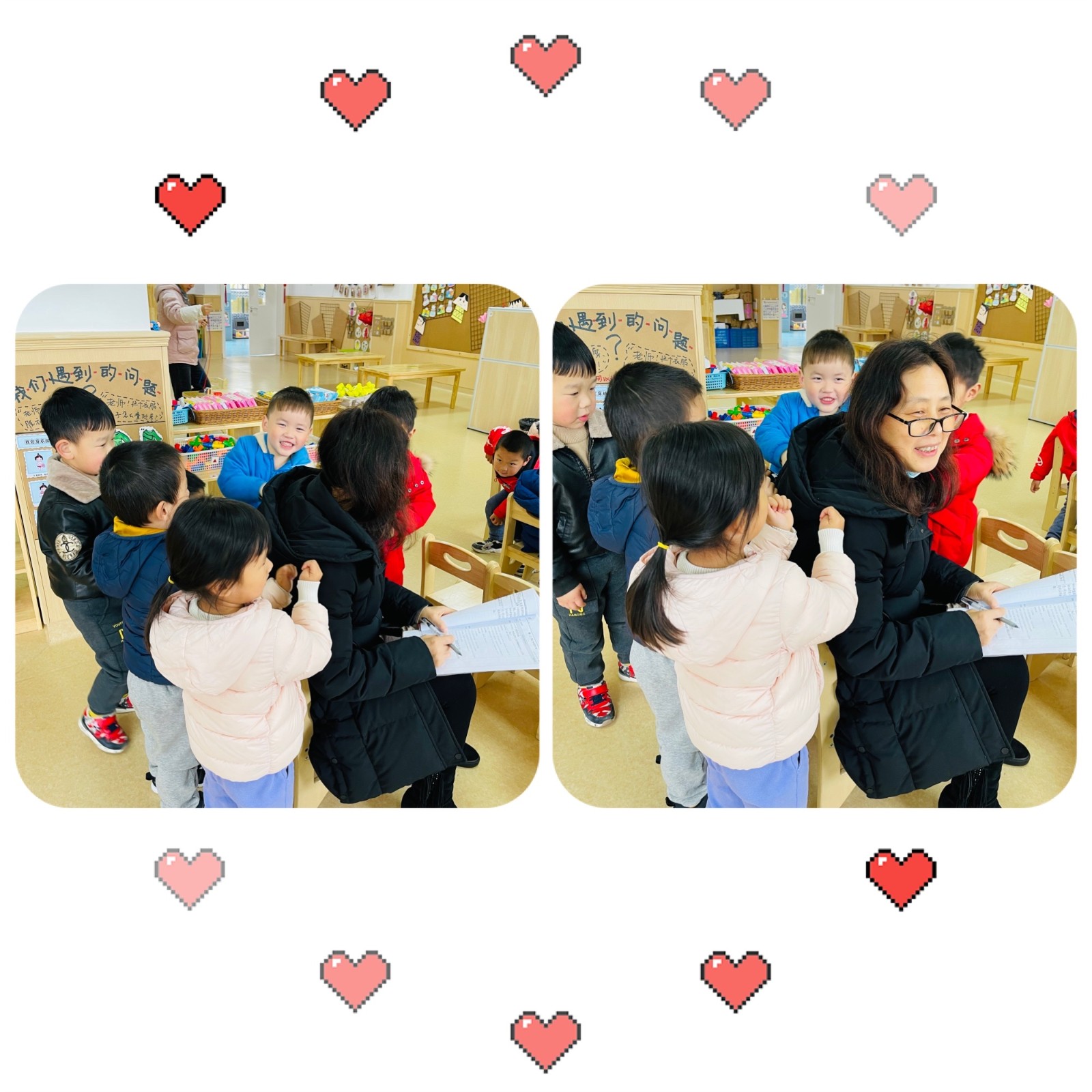 孩子们还根据自己的能力,力所能及地进行同伴间的互助活动,以帮帮乐的形式帮助小伙伴整理衣裤、背书包等。还有的孩子贴心的为园长妈妈和老师捶起了背,向他们道声“你们辛苦了”,幼儿园的每个角落里都留下了“小雷锋”的身影!