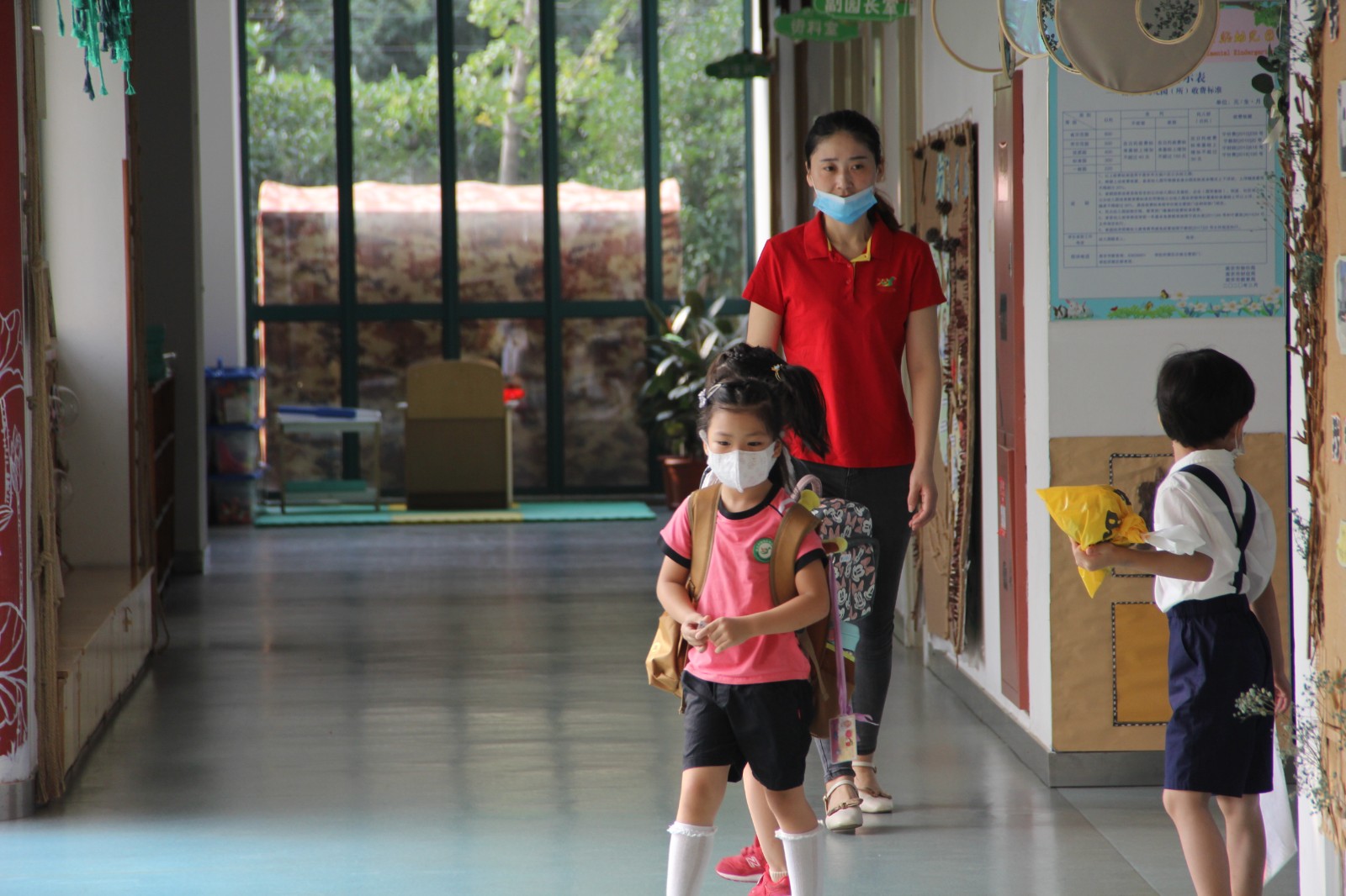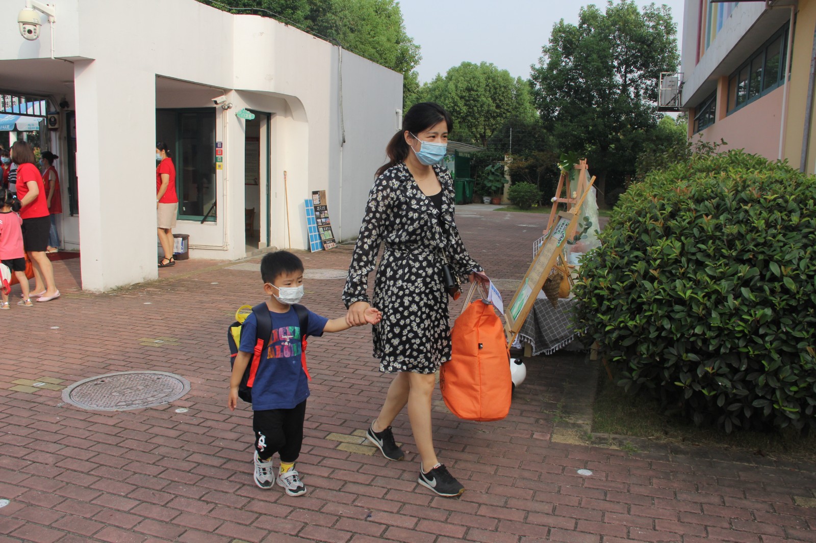中大班的宝贝们洒脱地挥挥手,和爸爸妈妈勇敢地说再见,在老师的指引下独自走进班级,小小的背影告诉大家:我长大了!