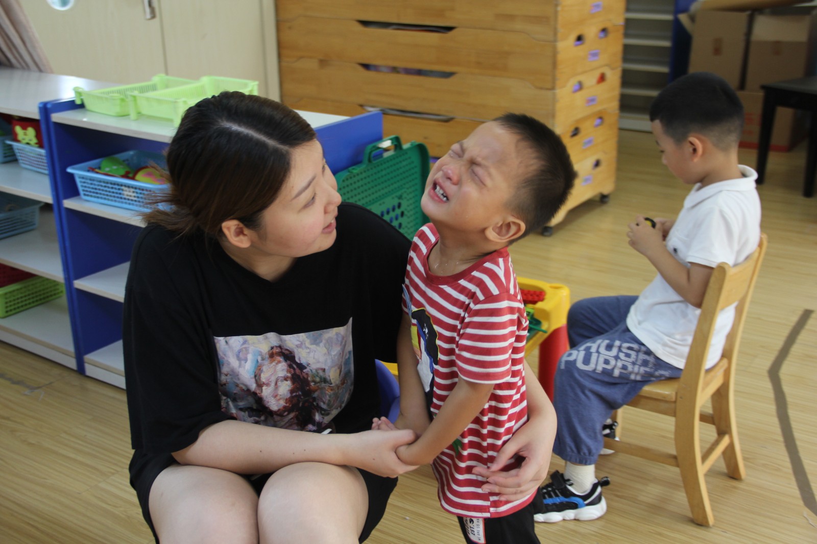 小班宝贝们或开心的玩耍,或是独自坐在角落,或是静静看着教室中的情景,观察着老师和同伴;哭闹的小朋友紧跟老师的步伐,拽着、拉着老师……每个人都在努力适应着新的环境。