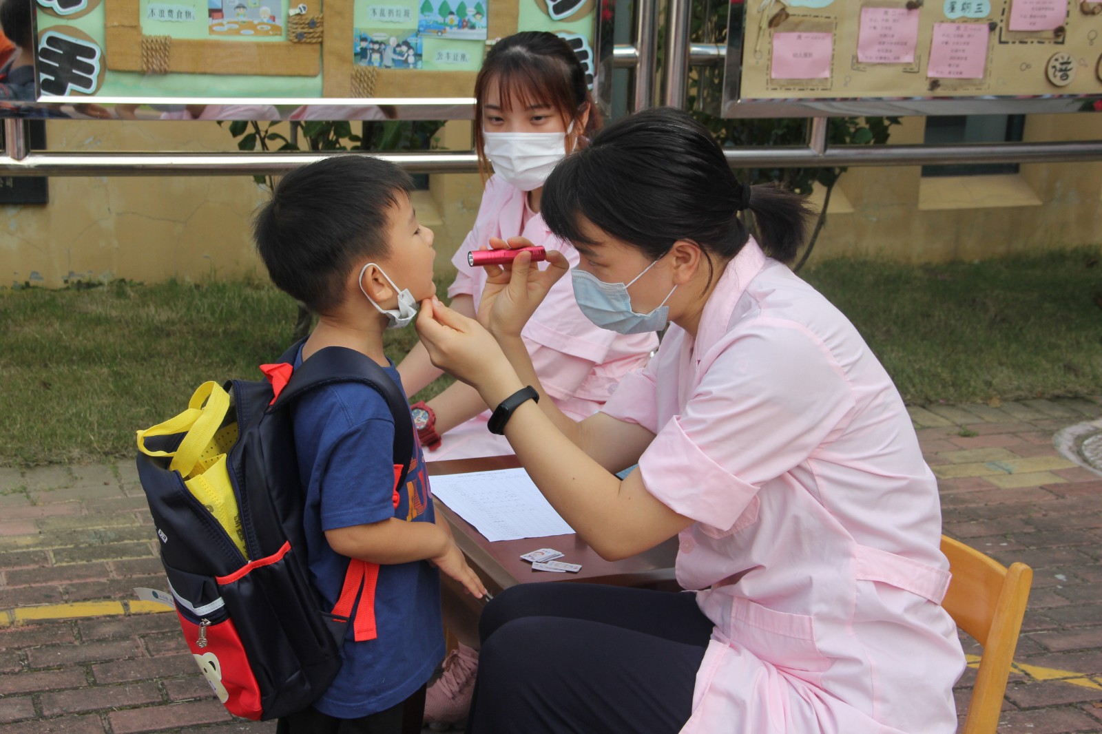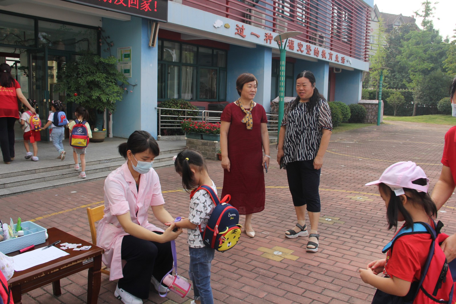 清晨,园长和老师们早早的等候在门口,亲切的目光、热情的笑容,为每一位小朋友送上新学期的祝福。入园晨检拉开了幼儿园一日生活的序幕……