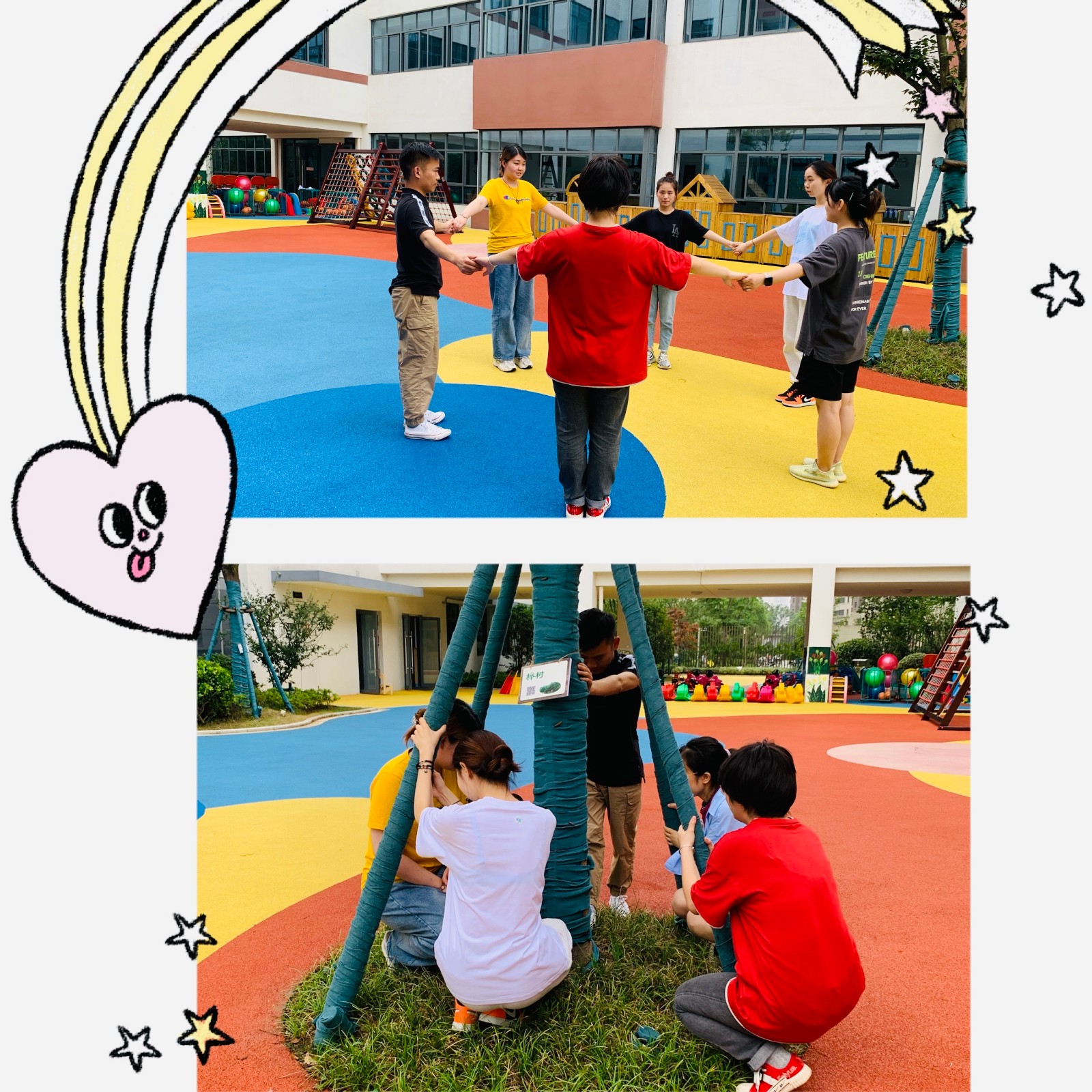 活动中,任老师带领全体教师一起玩了《大风吹》、《照相机》、《蝙蝠和飞蛾》等互动小游戏,这些游戏引发了全体教师的强烈共鸣。与自然游戏,从寻找发现身边的自然开始,打开身体和感官观察它们,继而探索它们的秘密,再和它们一起玩耍,并将它们与自己的真实生活关联,这是孩子与自然游戏的基本路径。