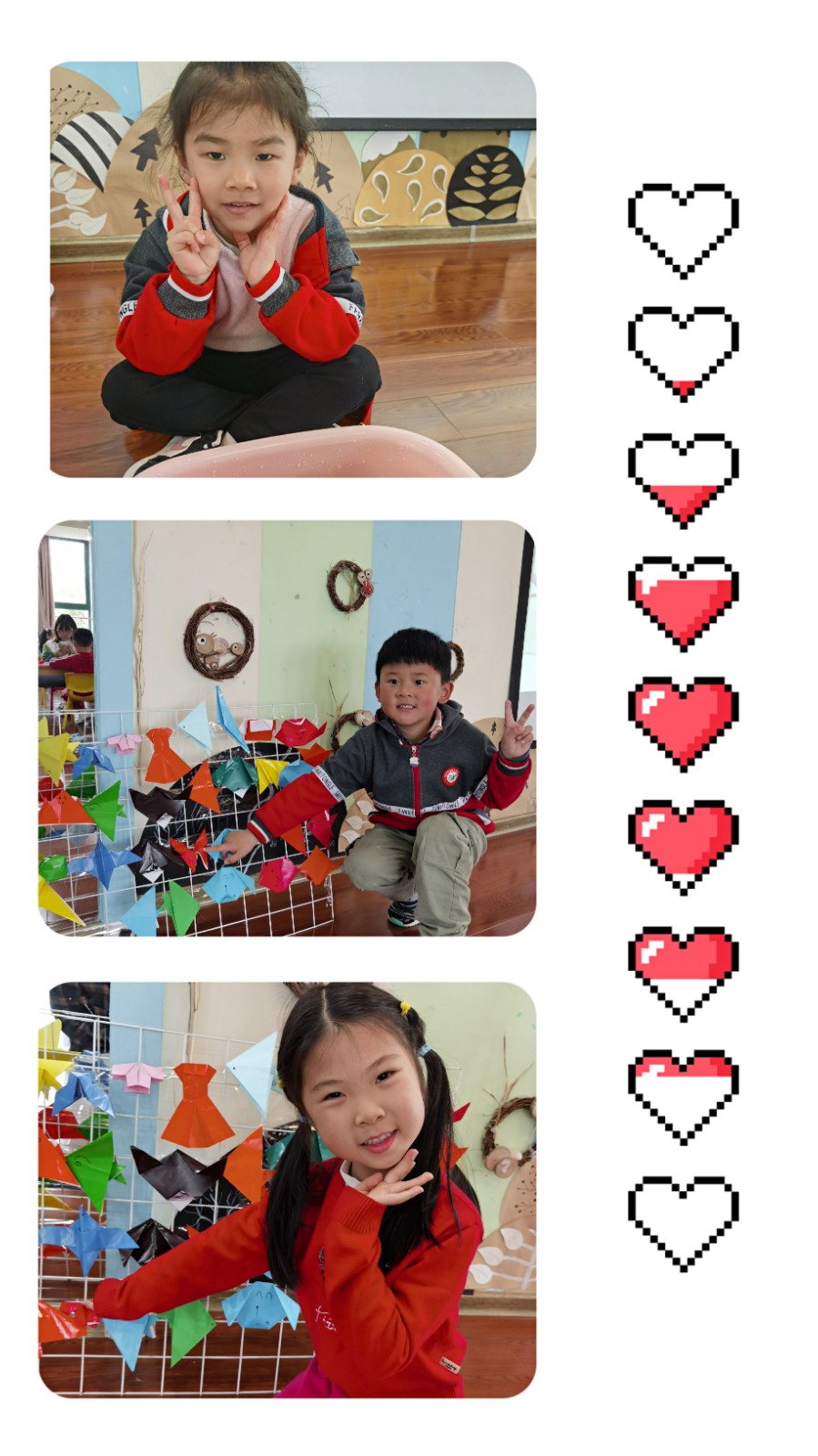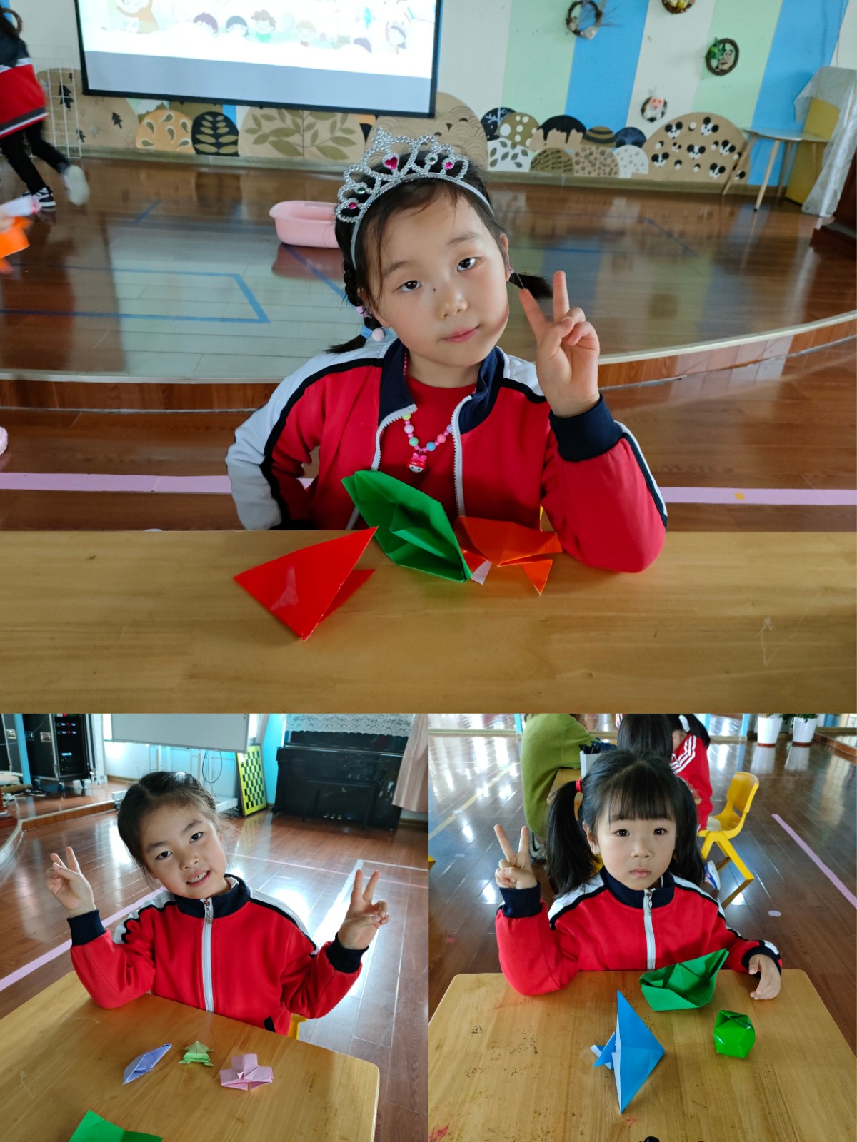 看看小选手们多棒呀!一会儿功夫就变化出各种不同的折纸造型,有小船、有青蛙、有啄木鸟......