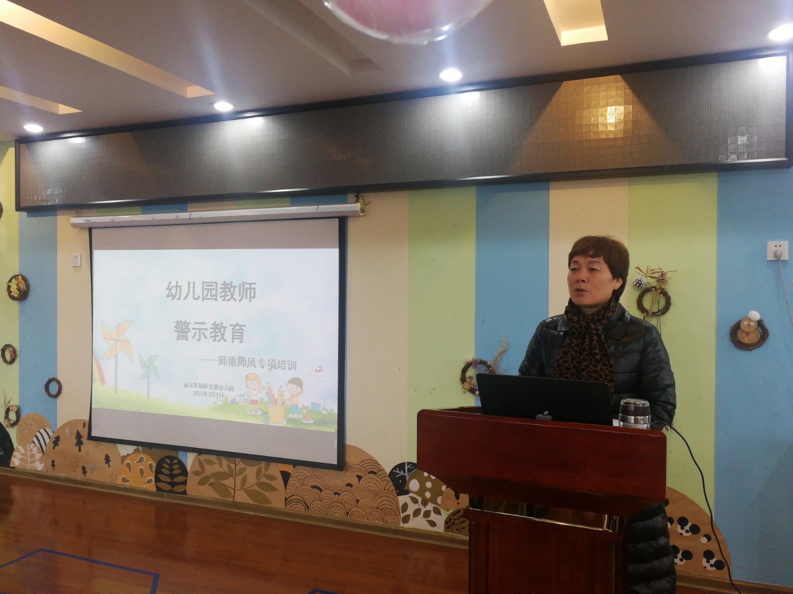 活动中,南京市仙林实验幼儿园教育集团园长徐翠花对全体教职工进行了警示教育,要求大家时刻自重、自省、自警、自励,坚守师德底线。