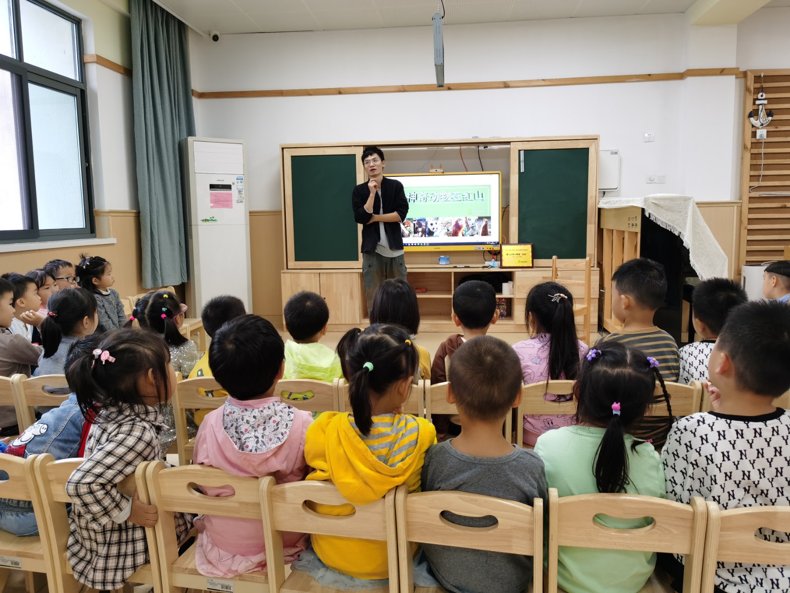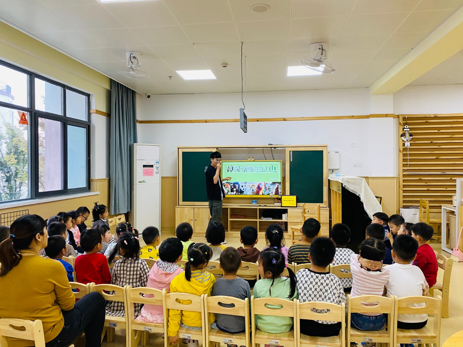 南京市仙林实验幼儿园光启路分园中四班认养红山动物园的“小熊猫朵朵”活动之后,10月15日,红山动物园的讲解员走进中四班,进行动物科普活动,从而拉进了幼儿与小熊猫朵朵的情谊。