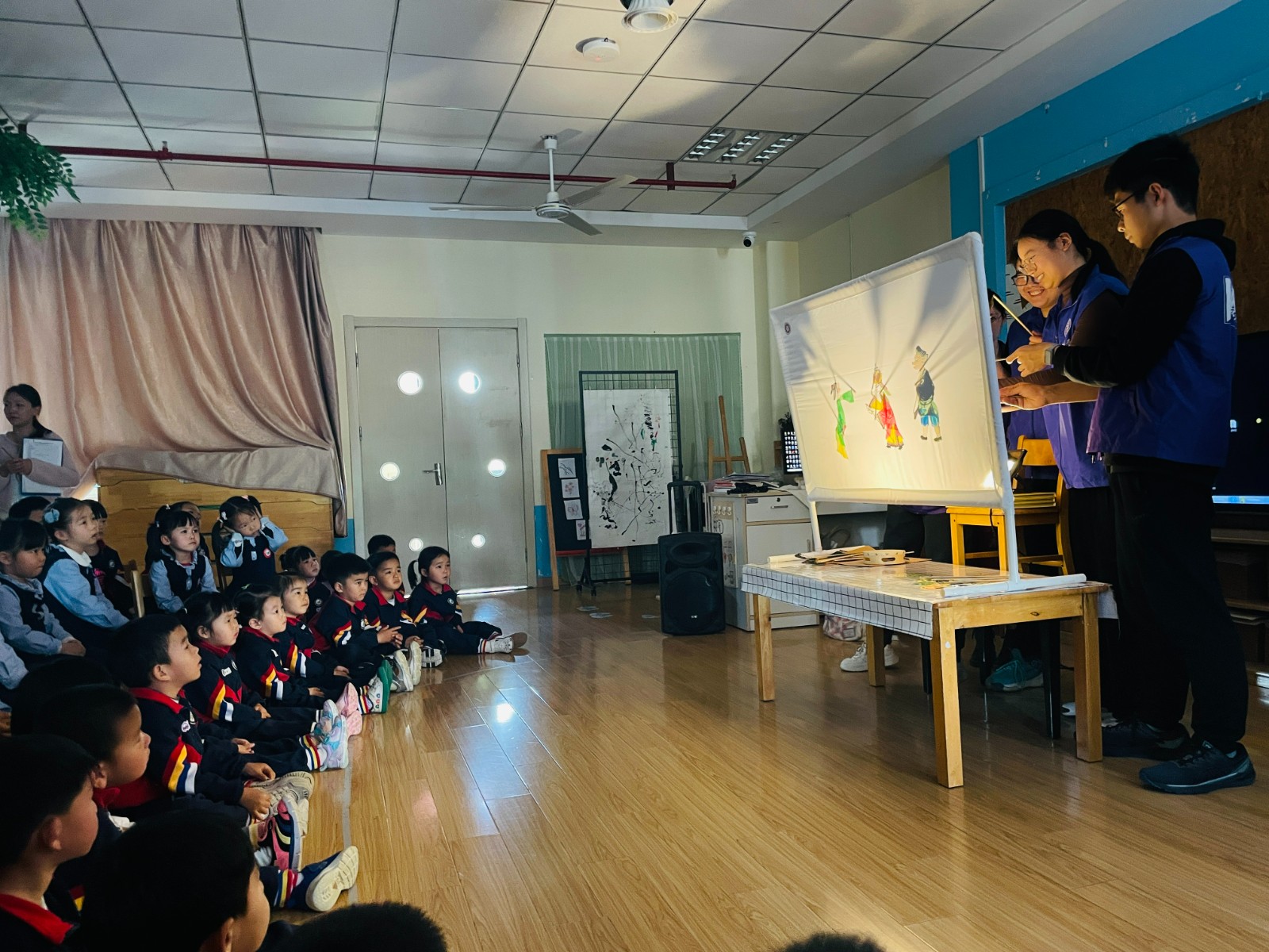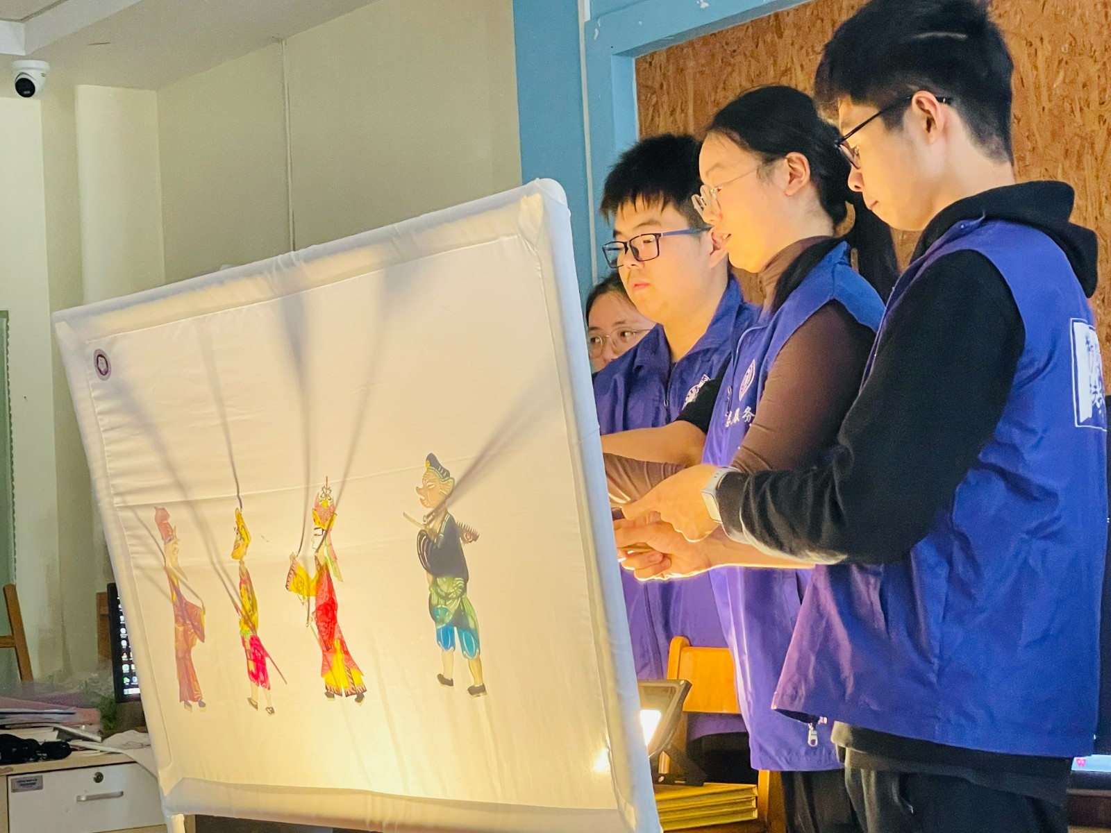 在有趣的音乐声效和生动的语言烘托中,大学生志愿者用灵巧的双手操纵着竹棒,《三打白骨精》、《武松打虎》一个个皮影人物在他们手中上下翻转,来回跳跃,故事表演栩栩如生。小观众们目不转睛的观看着,她们都被皮影戏这一传统民间艺术深深吸引......