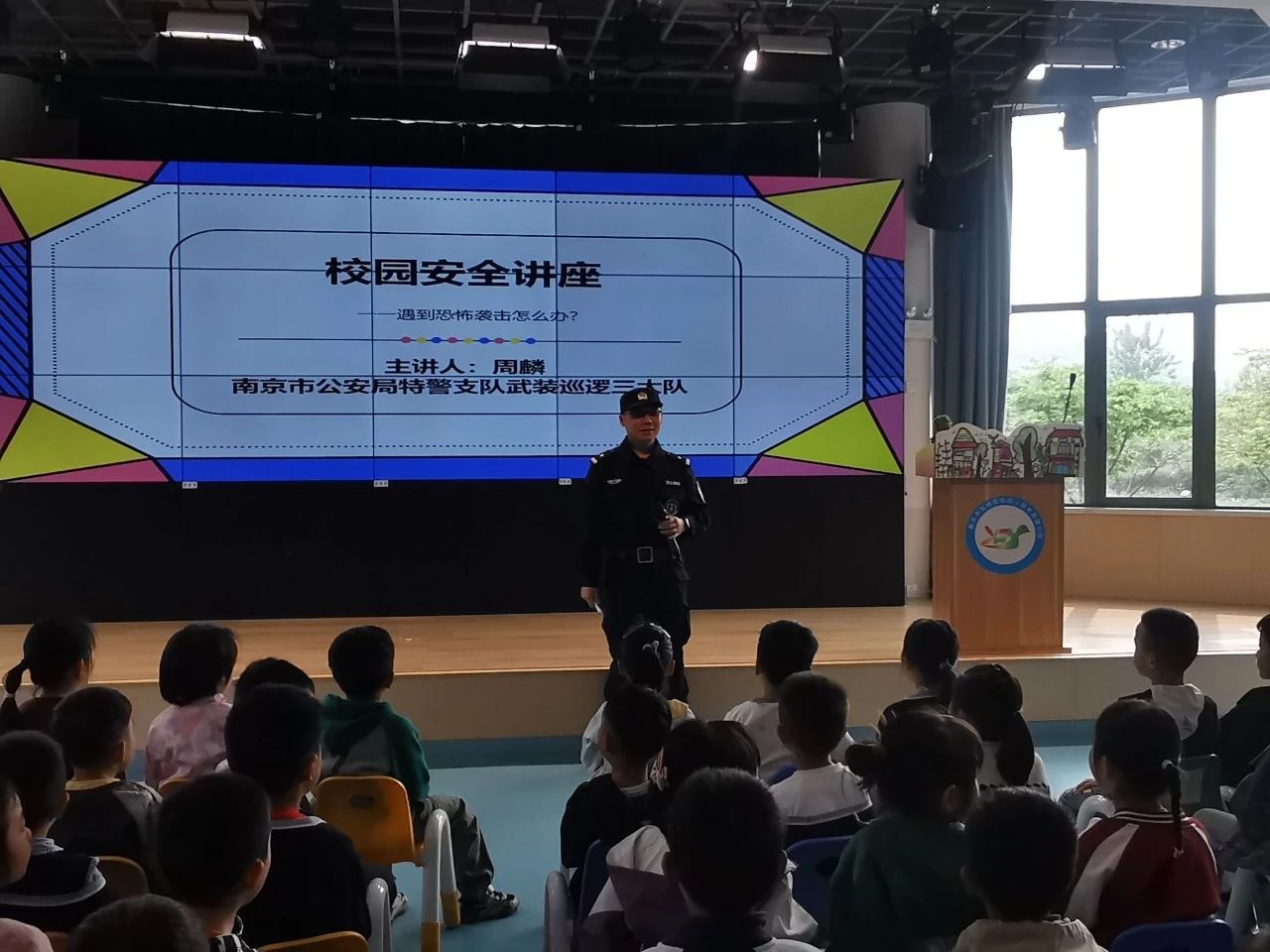 “居安思危,思则有备,有备无患。”安全是做好一切工作的前提。为进一步加强师幼安全意识,掌握基本的安全应急技能,确保全体师幼的人身安全,2024年4月23日,仙实幼光启路分园邀请我园法制副校长——仙林派出所魏建国警官及南京市公安局特警支队武装巡逻三大队的警官们来园,对大班幼儿进行《校园安全知识》讲座,为我园教职工进行反恐防暴的知识技能培训以及反恐防暴演练指导。