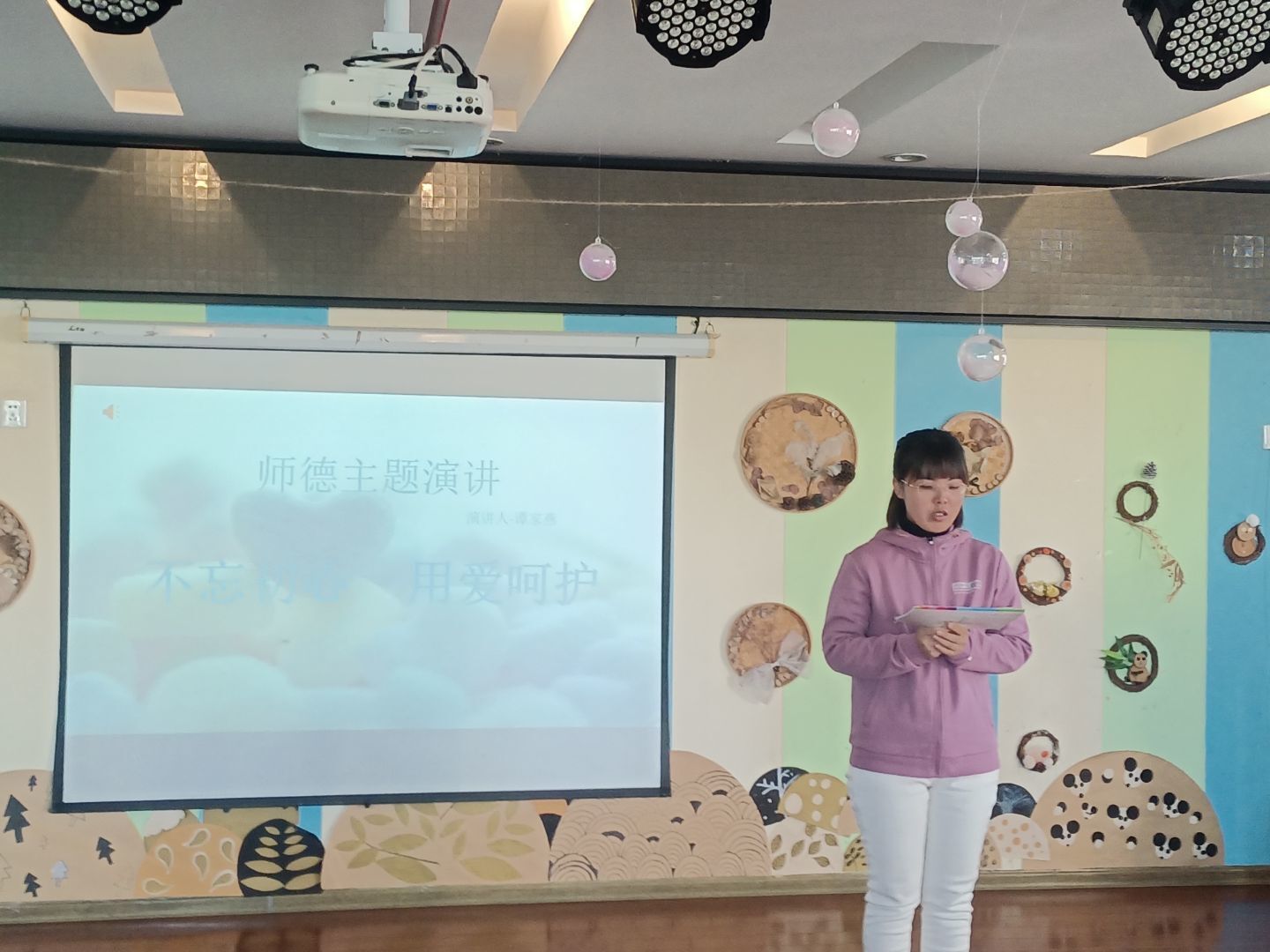 老师根据抽签的顺序,依次上台进行演讲。老师们用朴实无华的语言叙说工作中的点点滴滴,有来自孩子们的感动、有得到家长认可的喜悦、有遭遇挫折的反思、有收获成长的幸福。这些在平凡岗位上发生的不平凡的故事,感动着在场的每一个人。从教师们的演讲中能够感受到,每个平凡而感人的故事背后都是教师对孩子炙热的爱,对教育事业的憧憬,现场气氛热烈,感人至深。