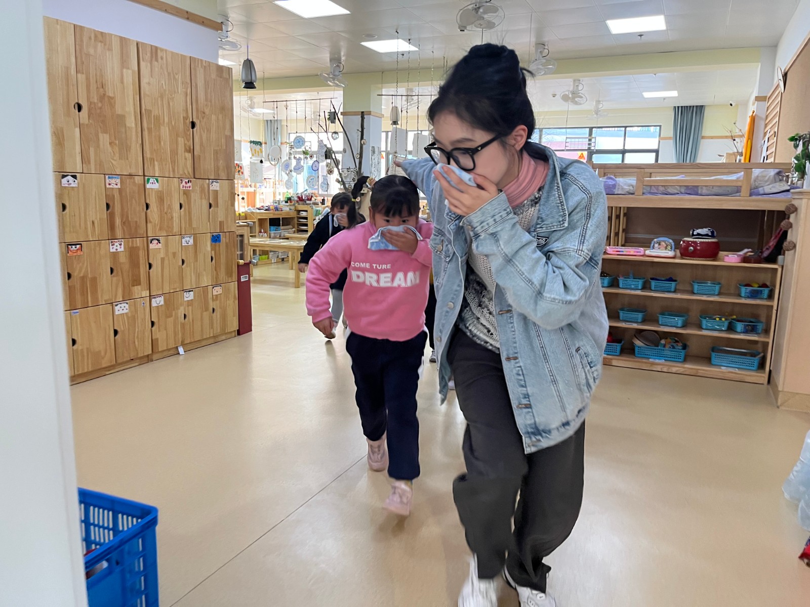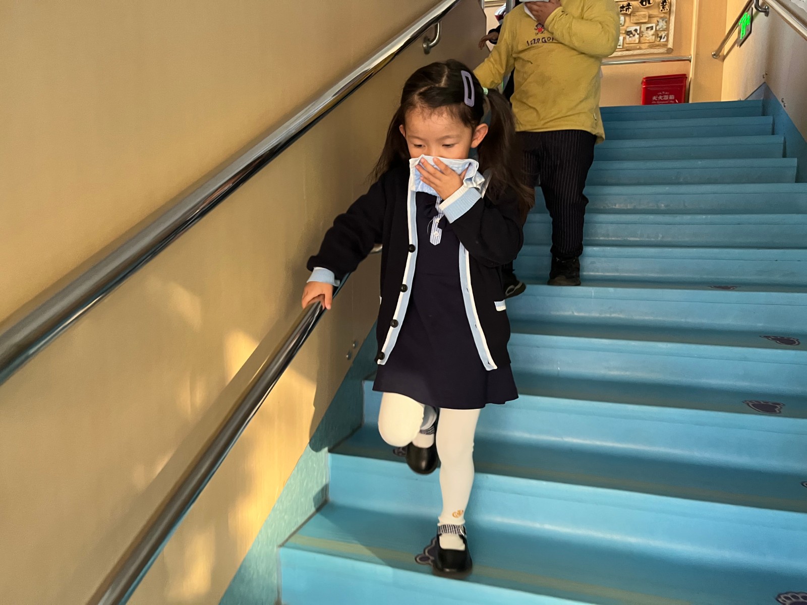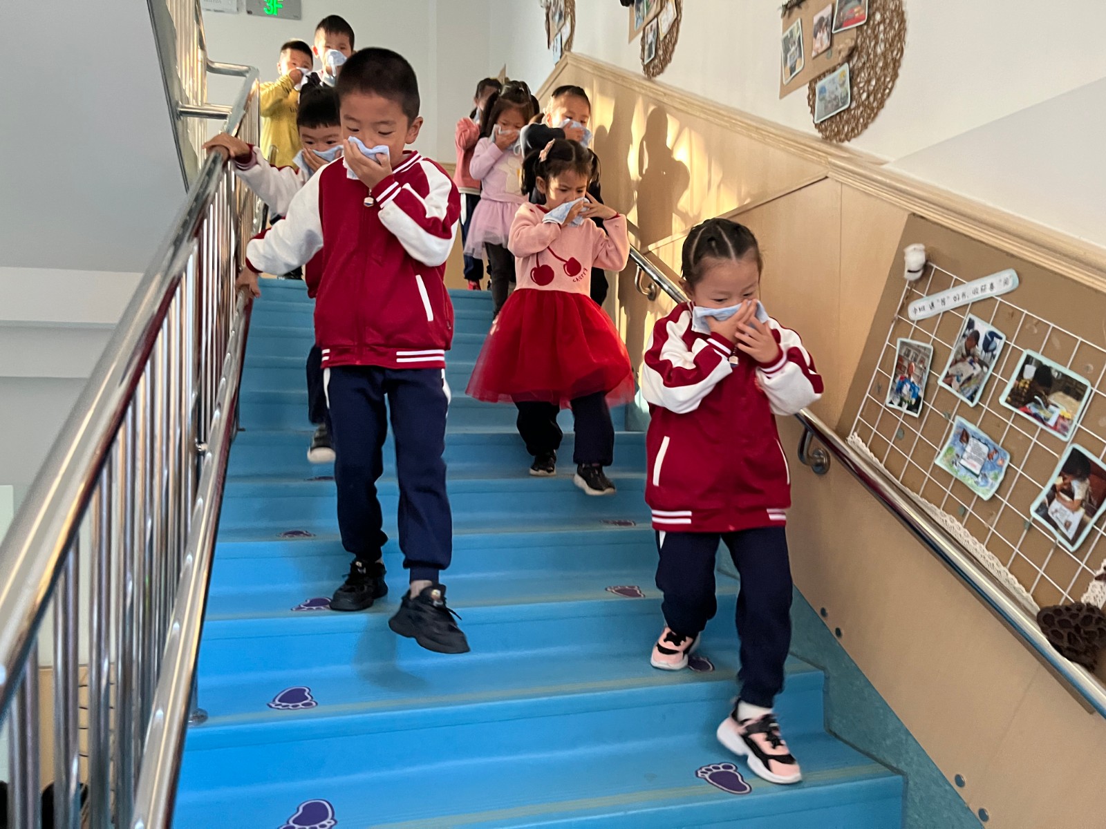“呜——”急促的警报声在幼儿园里响起,消防疏散演练开始了。全体幼儿在各班老师和消防员叔叔的组织和带领下,俯身低头、用毛巾捂住鼻子井然有序地沿着安全通道紧急疏散。消防员叔叔们勇敢、守纪、无私奉献的品质深深印在孩子们幼小的心灵,激励着他们健康成长。活动最后,大班的孩子们怀揣着敬意与感恩之心,将亲手创作的作品送给消防员叔叔,祝福他们每一次任务都能平安归来。