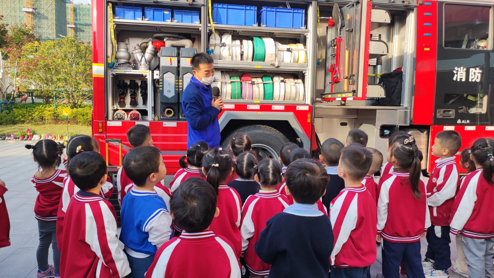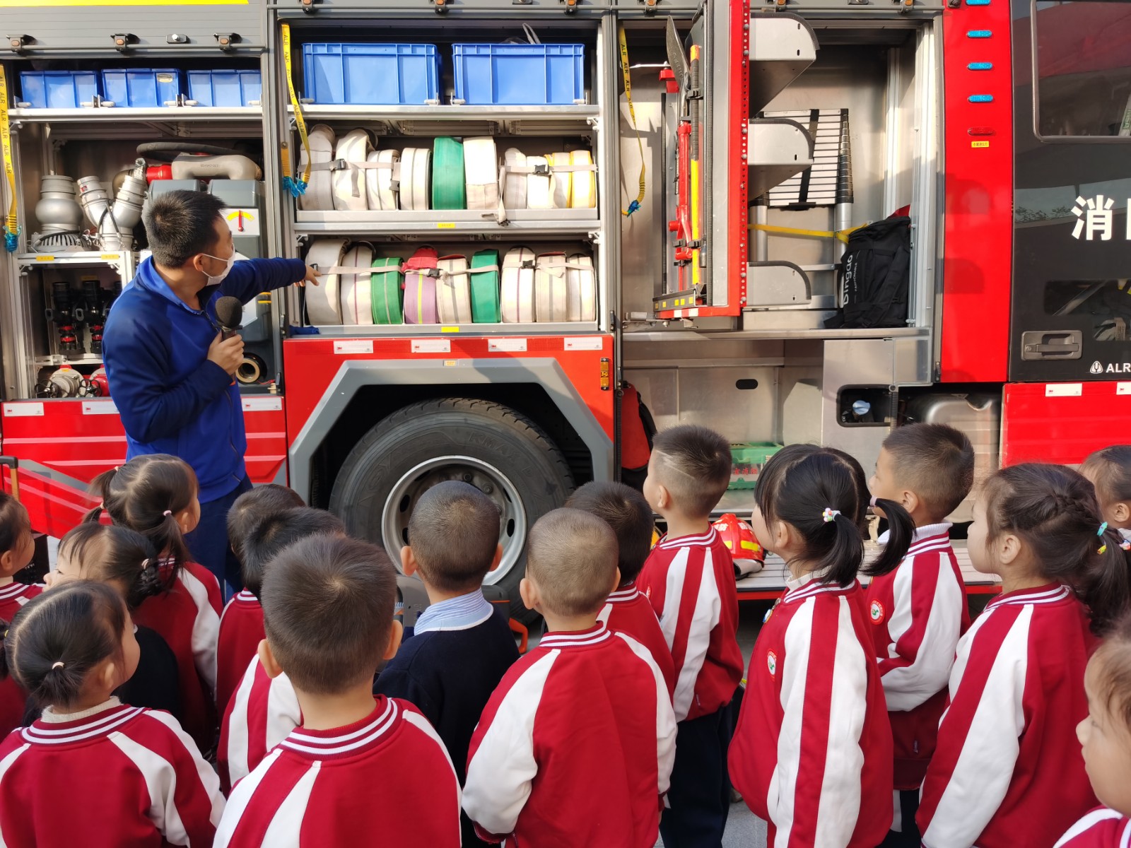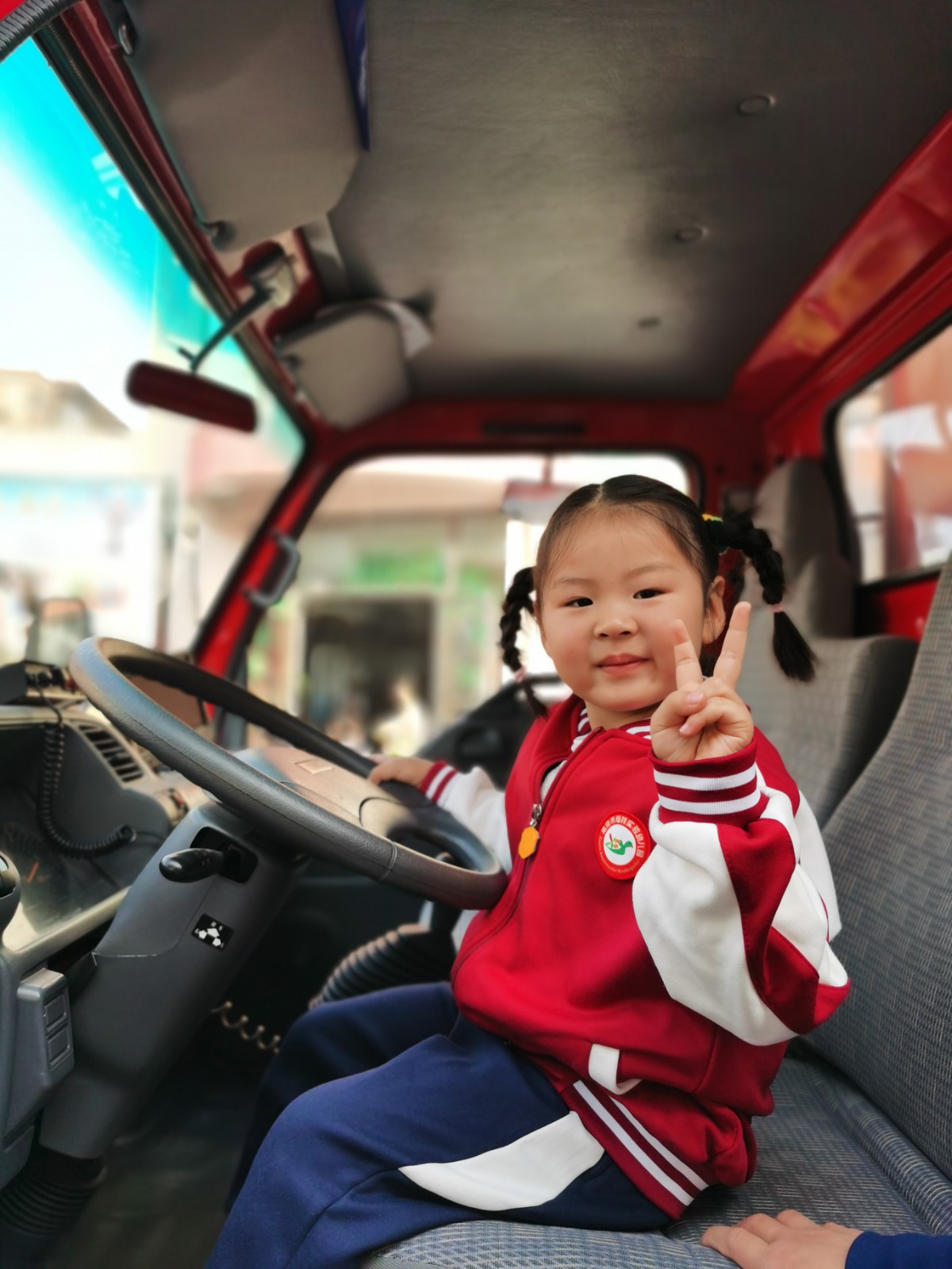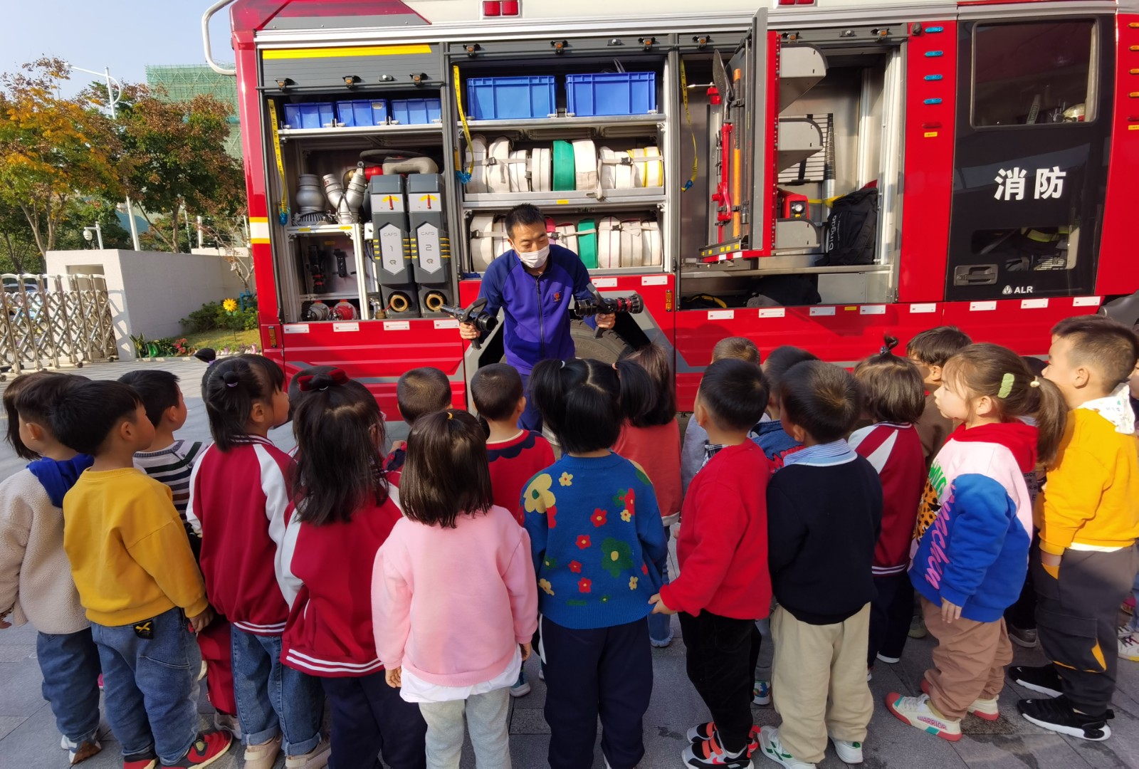 当火红的消防车伴随着警笛声缓缓开进幼儿园时,孩子们瞬间被这辆“红色战车”所吸引,第一次近距离接触消防车,再也抵挡不住内心的激动,欢呼声、掌声此起彼伏。