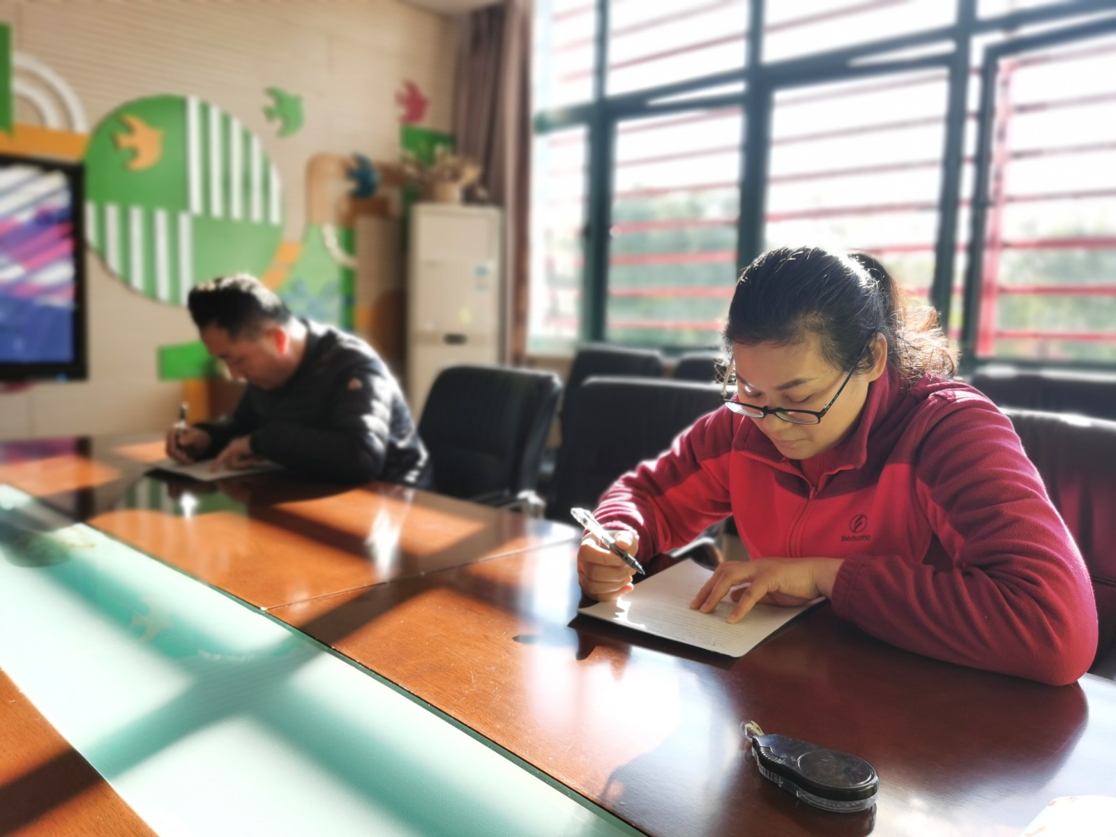 培训结束后,开始进行理论测试环节,本次考试主要对食品安全、食堂卫生消毒、食品安全操作规范、每日工作流程等多方面进行考核。食堂工作人员结合自身工作实际,沉着思考,认真答卷,顺利完成了本次考试。