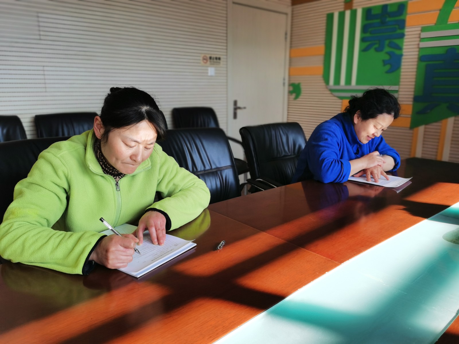 此次活动分为培训和考核两部分,首先由食堂管理员陶燕燕老师对食堂各项管理制度、食品安全操作规范等进行了详细的解读,尤其强调了食品采购验收关的重要性及餐饮具的清洁与消毒方法等。在学习的过程中,食堂师傅们认真聆听,细心地做好笔记。