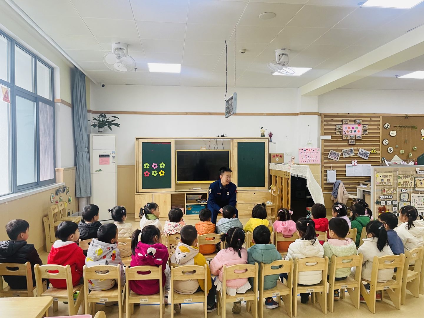 多功能厅里,大班的孩子们正在消防员叔叔的带领下,一起学习了如何拨打火警电话、如何正确逃生等安全知识,了解不同灭火器的适用范围,做到远离火患,预防先行。